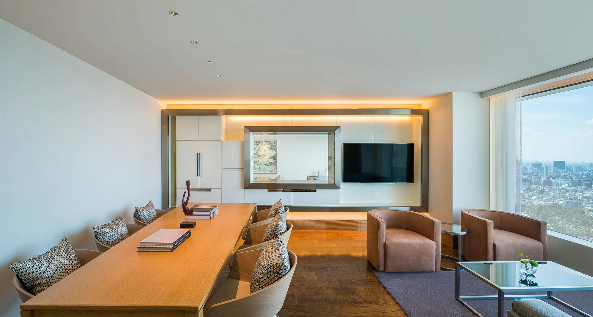 ダイナミックに広がる都心の眺望と、スタイリッシュなデザインが調和し、一つのアート作品として完成した空間。どのスペースからも絵画のような景色をご堪能いただけるよう設計されており、まるで天空のギャラリーのようなスイートルームです。※写真はイメージです。