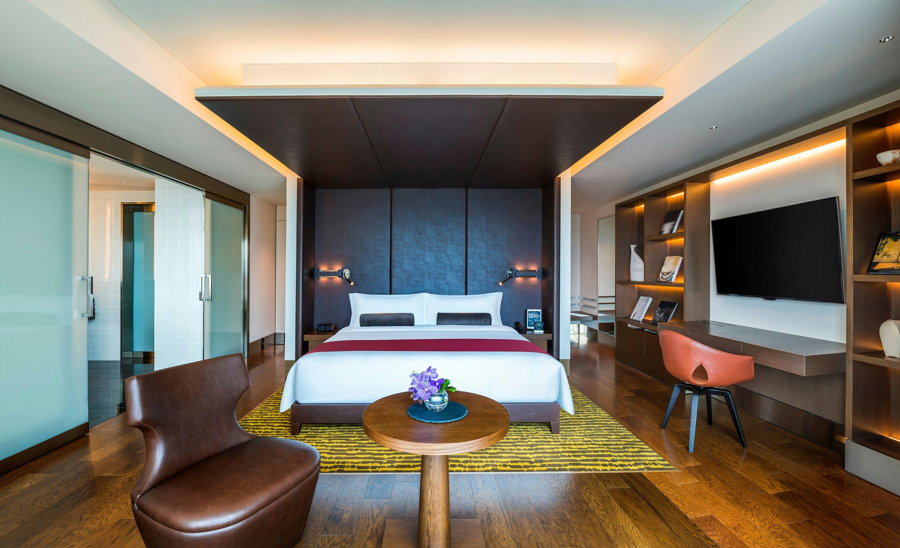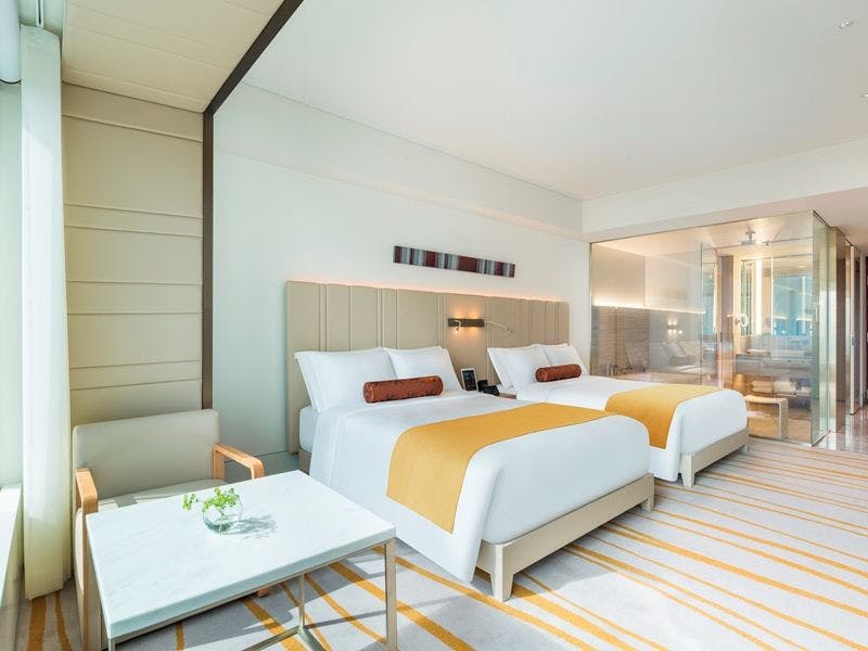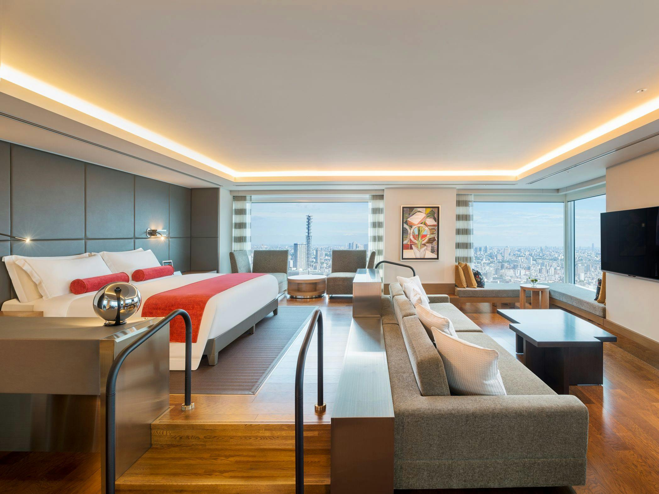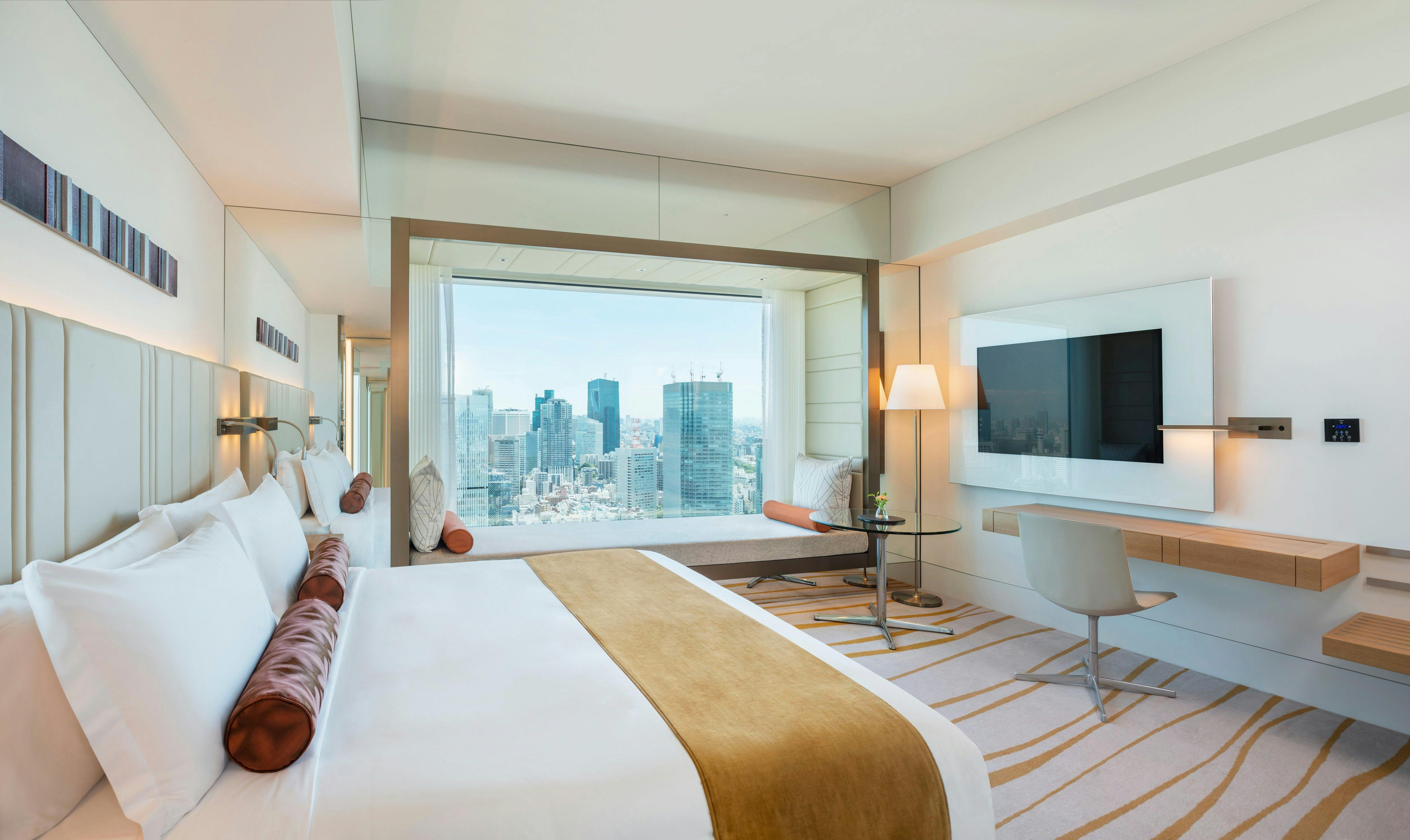 アートのような都心の眺望が広がるゆったりとした広さのデラックスタイプ。窓際のデイベッドが天空のようなひとときを演出いたします。クラブラウンジご利用特典とともにくつろぎのご滞在をお楽しみいただけます。※写真はイメージです。