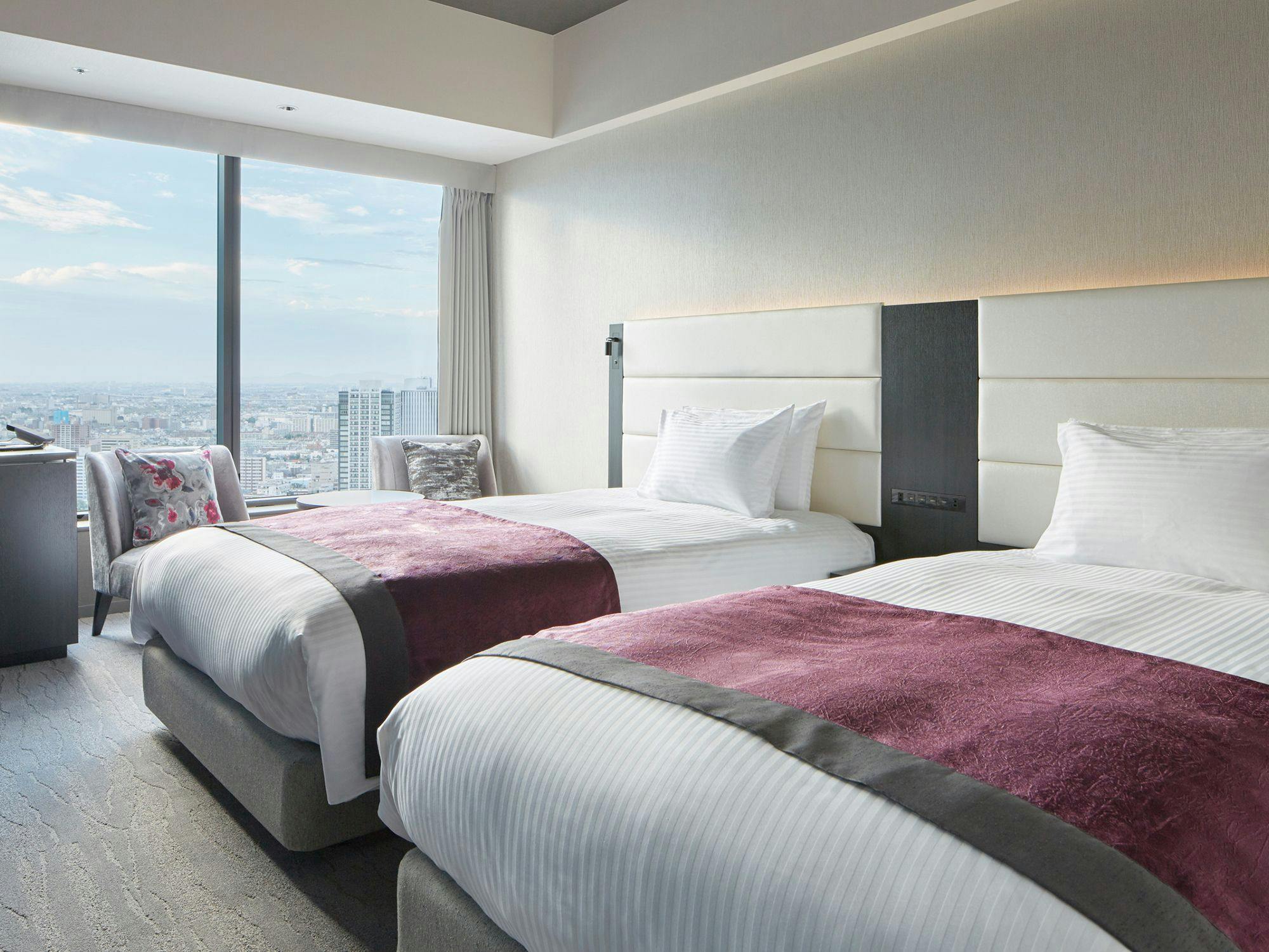 【19~25階/ベッド2台(幅123cm)/34平米】デスク無/ソファ有/洗い場付きビューバス/ハリウッドツイン【ReFa BEAUTECH DRYER PRO/ReFa FINE BUBBLE S】