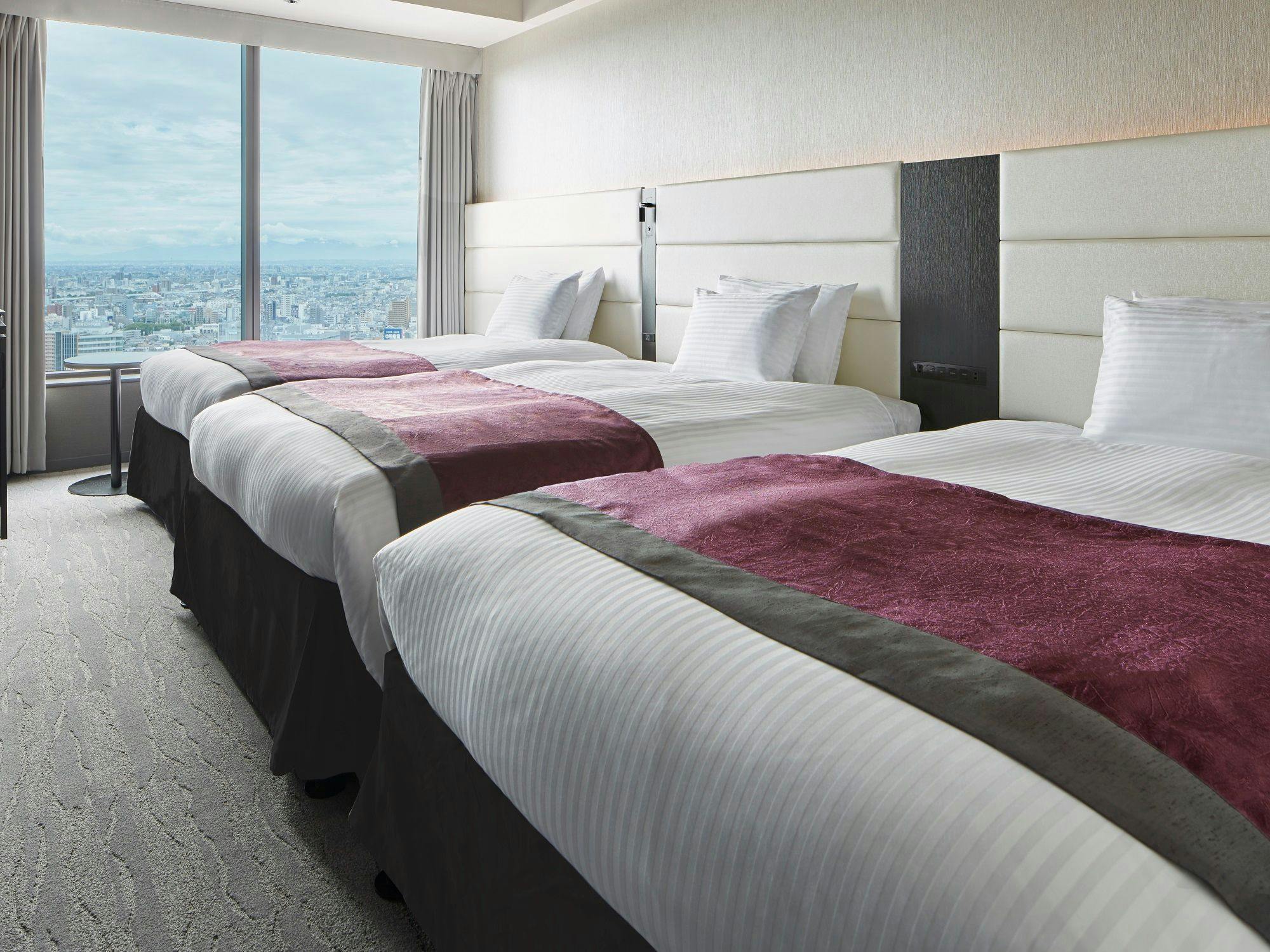【19~25階/シングルベッド3台/25.6平米】デスク無/ソファ無/広めのユニットバス/リファファインバブル S/ベッド接着不可/ツインベッド+エキストラベッド1台(1~2名利用時もベッド3台)