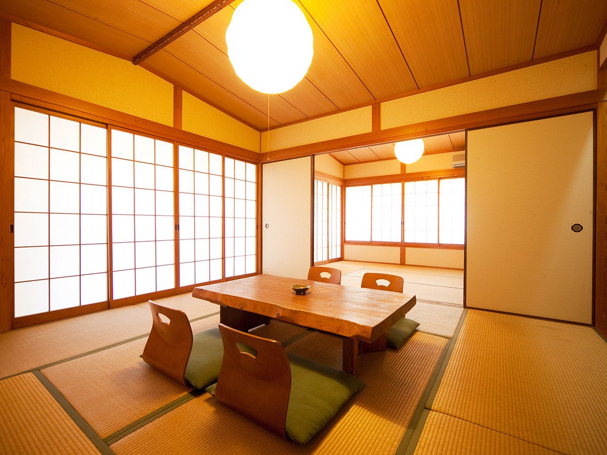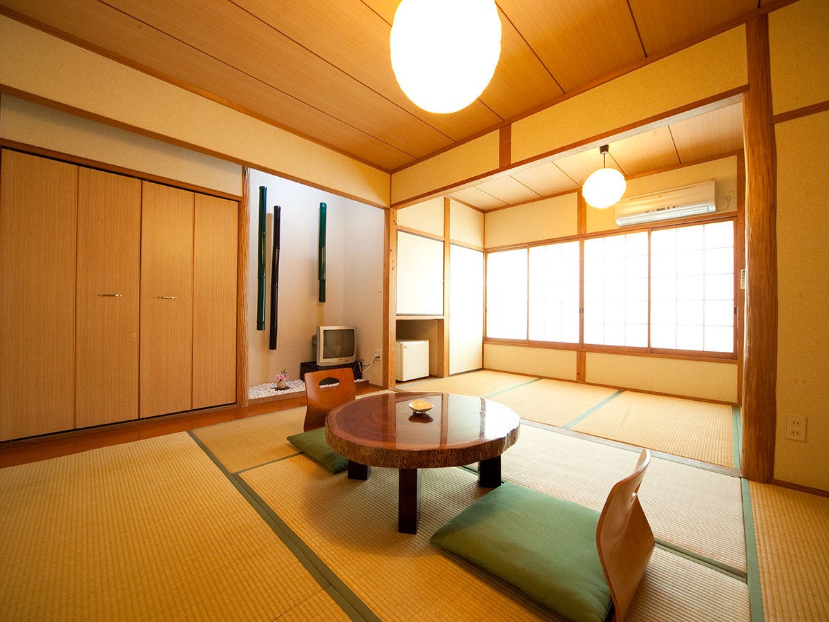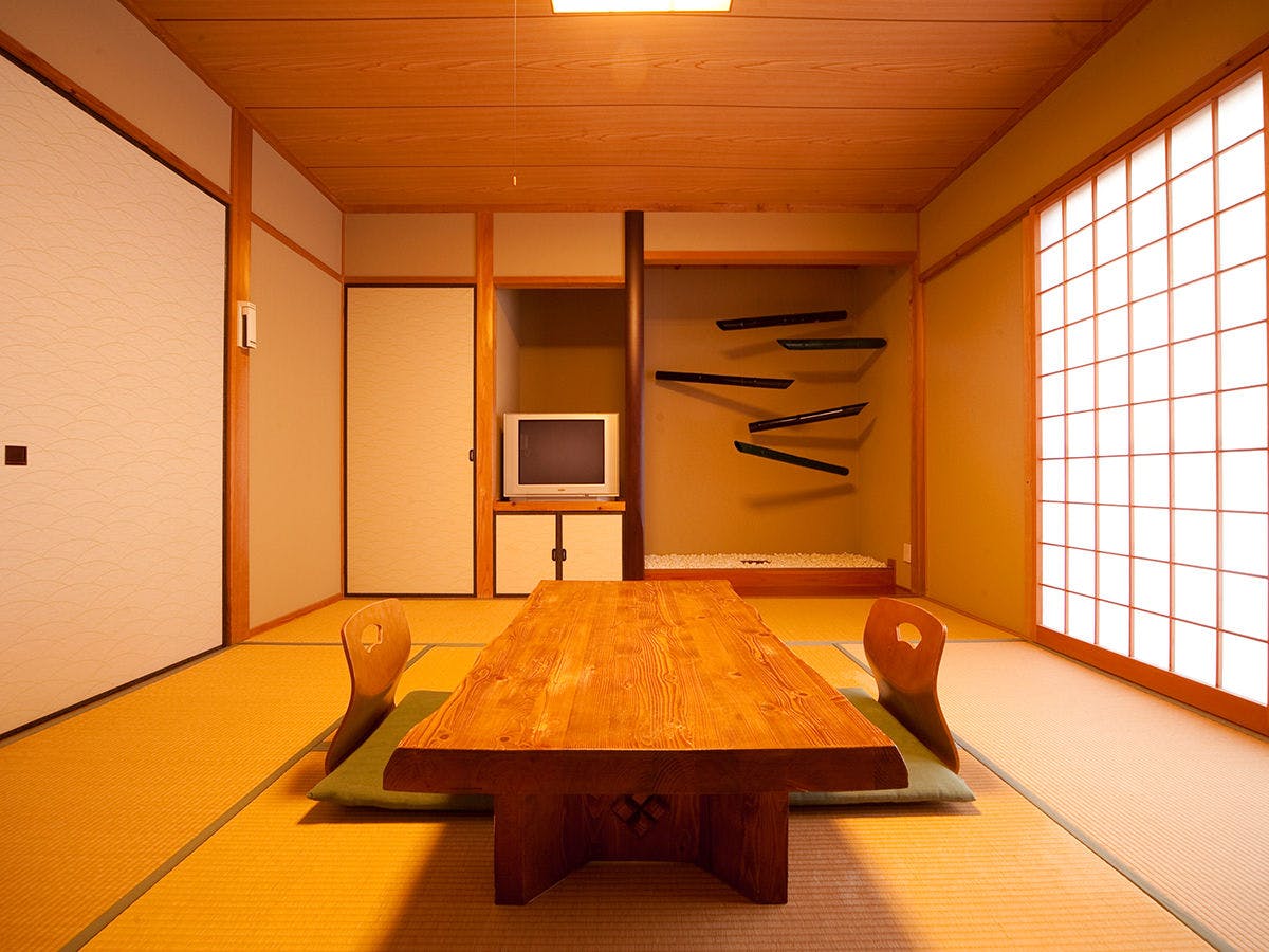 大人2名様でもゆったりめの造りになっておりますシンプルで寛げるスタンダード和室です。お部屋に温泉は付いておりませんが、温泉棟の貸切露天風呂・貸切内湯がご利用頂け、露天風呂から望む夜空の星は本当に綺麗です。【客室装備のご案内】エアコン/地デジ対応TV/冷蔵庫/洗面台/カミソリ洗浄機付トイレ/ドライヤー/お茶セット/洗顔ソープタオル/バスタオル/浴衣/足袋(冬場)/くし/金庫