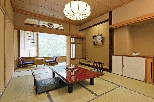 露天風呂付客室(和室)からの渓谷の眺め