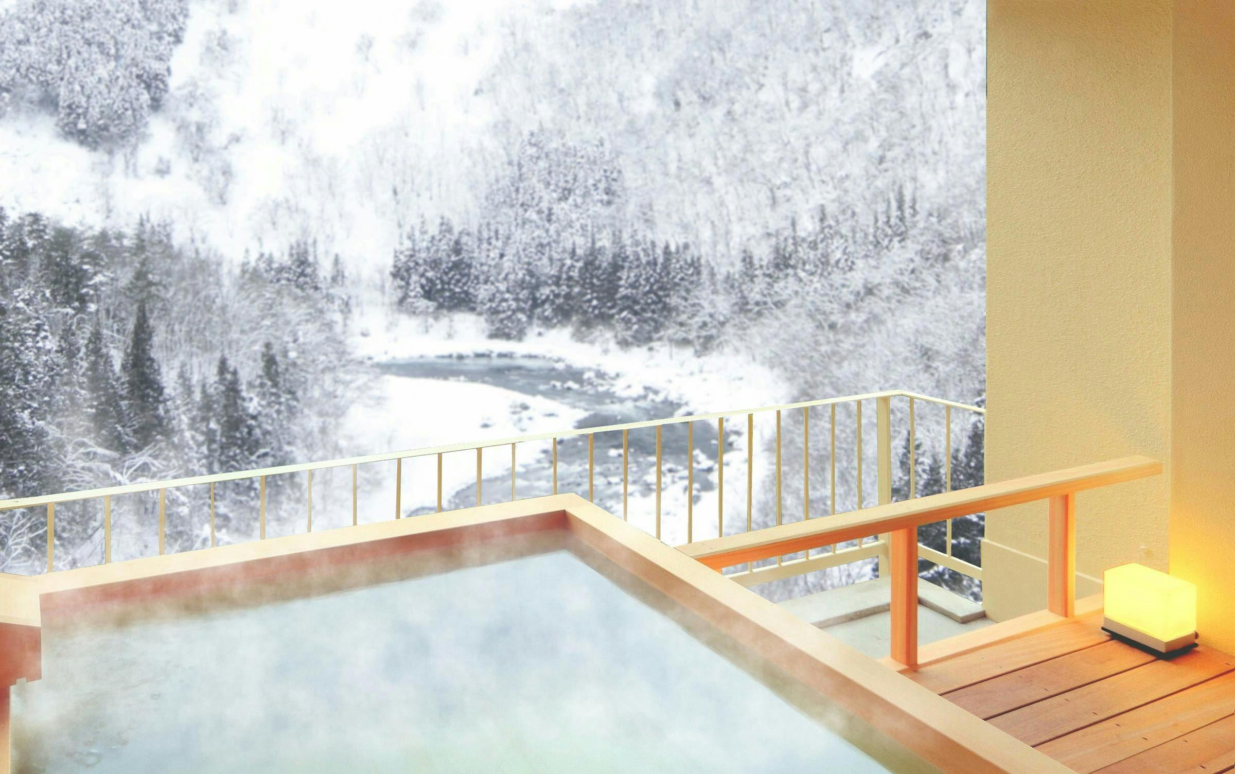 当館でたった一部屋だけ、角部屋ならではの屈指の景観を誇る渓流を望むお部屋です。