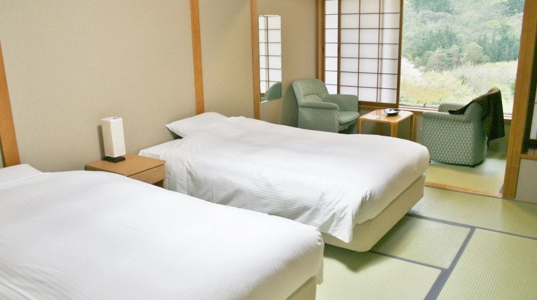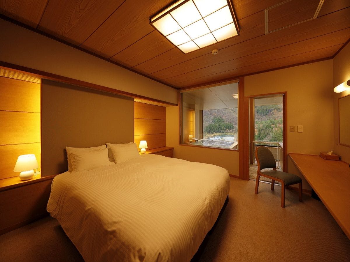 渓谷を望む景観、40平米、ベッドルームと和室4畳半の広々としたお部屋。