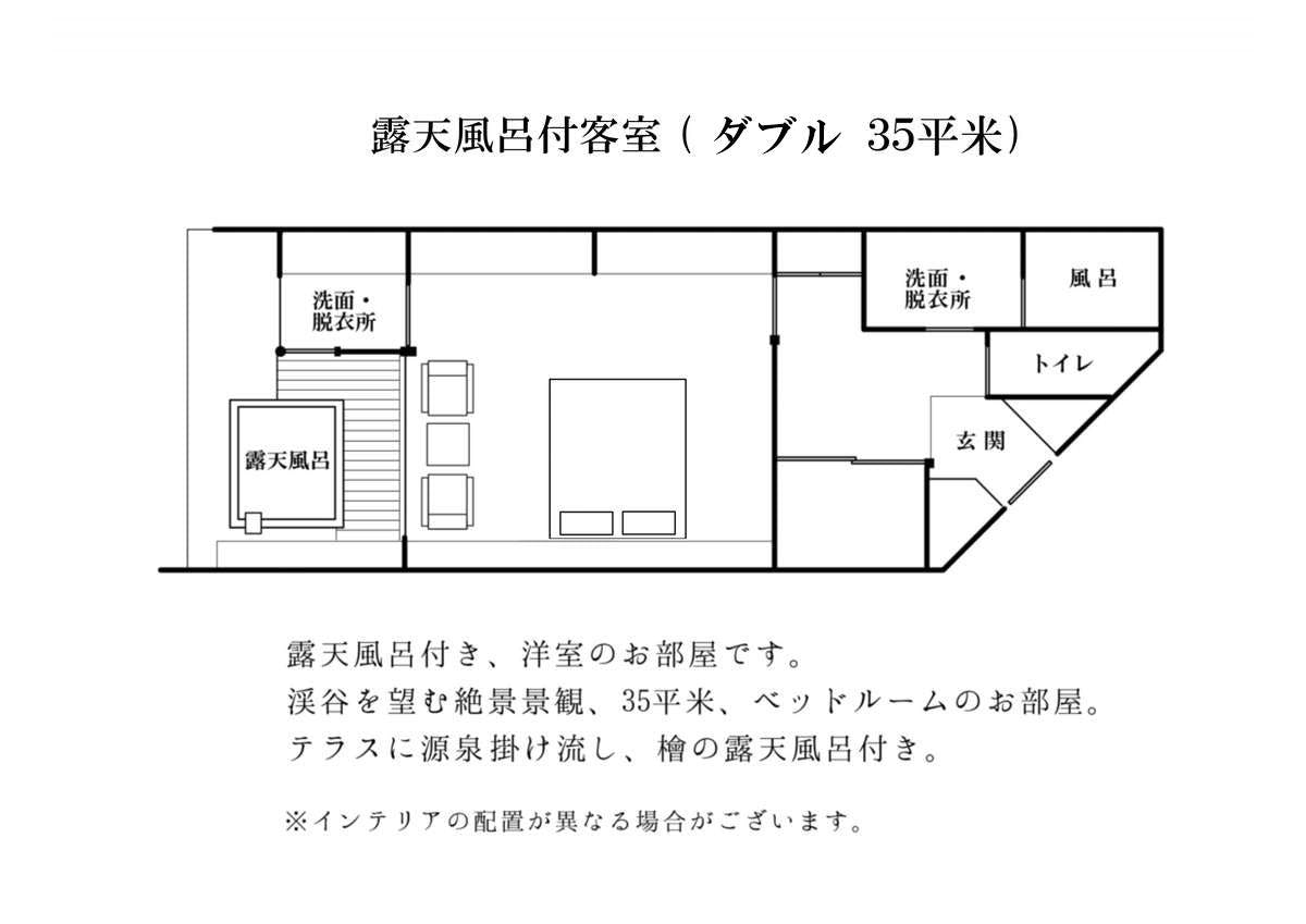 露天風呂付客室(ベッドタイプD)平面図