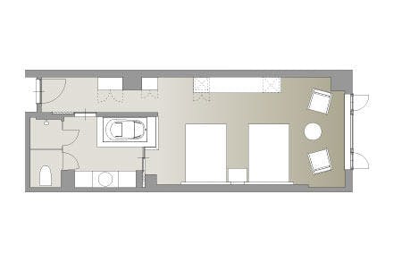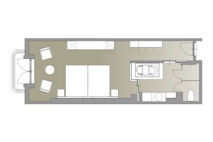 本館2F-3Fに位置する、42平米以上のバルコニー付ツインルーム。