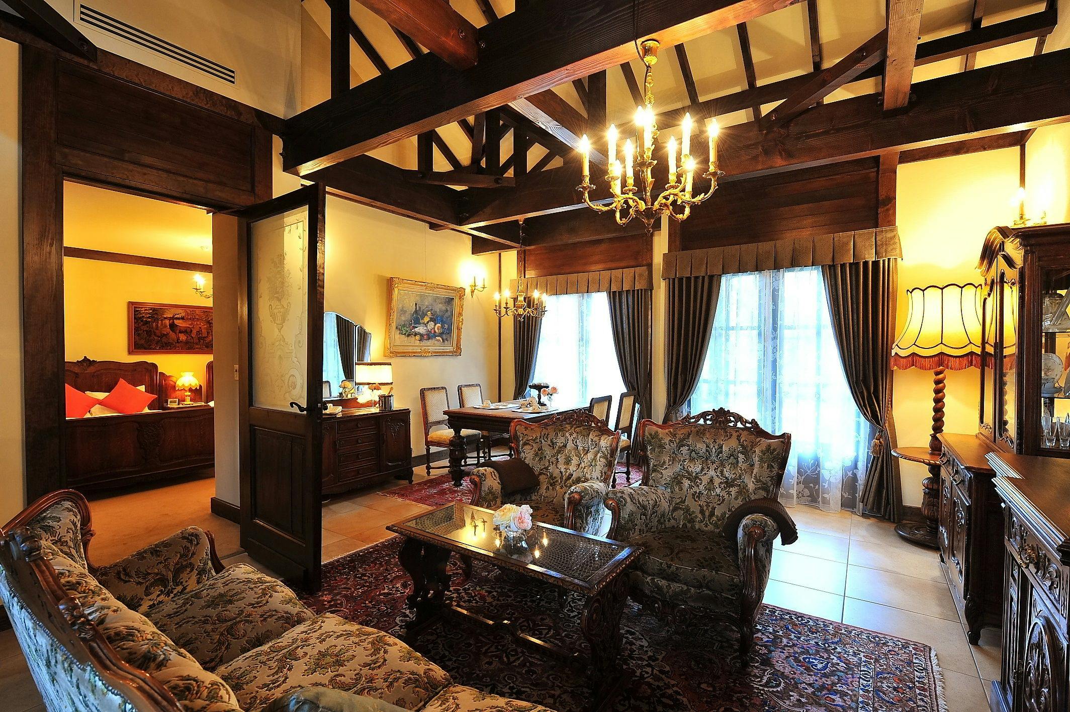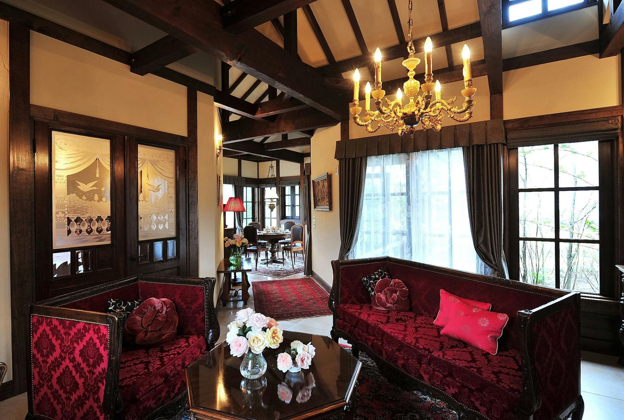 ヨーロッパのアンティークに囲まれた「ルゼ・ヴィラ」は、湖と庭園を望む別荘のような隠れ家でございます。
