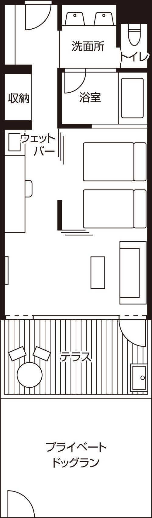 全ての客室から御影用水の水面と軽井沢の森を眺めることができ、愛犬と一緒に美しい水面を眺めながら、ゆっくりと流れるかけがえのない時間をお過ごしください。