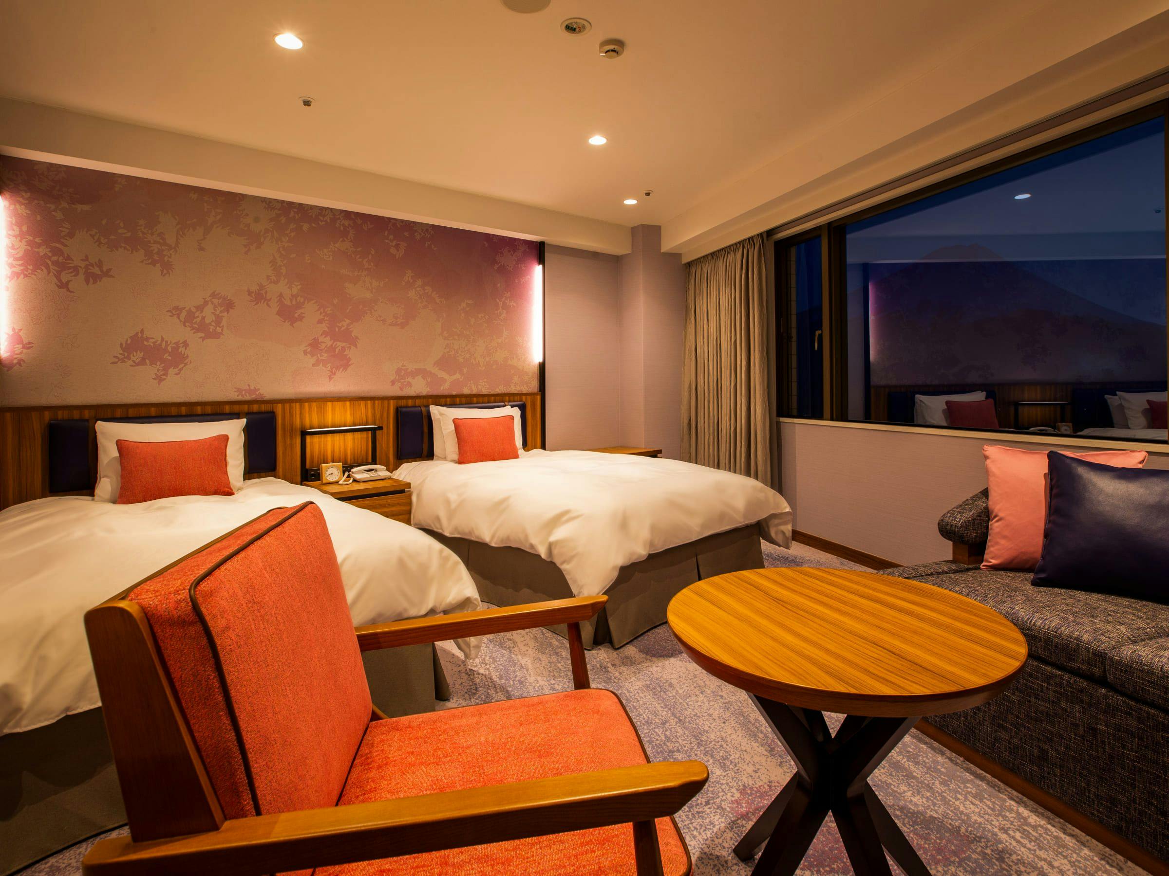 非日常にスイッチしたラグジュアリーな「第二の我が家」。心地よい客室で昼夜、全く違う顔を持つ富士山を眺めながら、大切なご家族との記憶に残るホテルステイをお約束いたします。