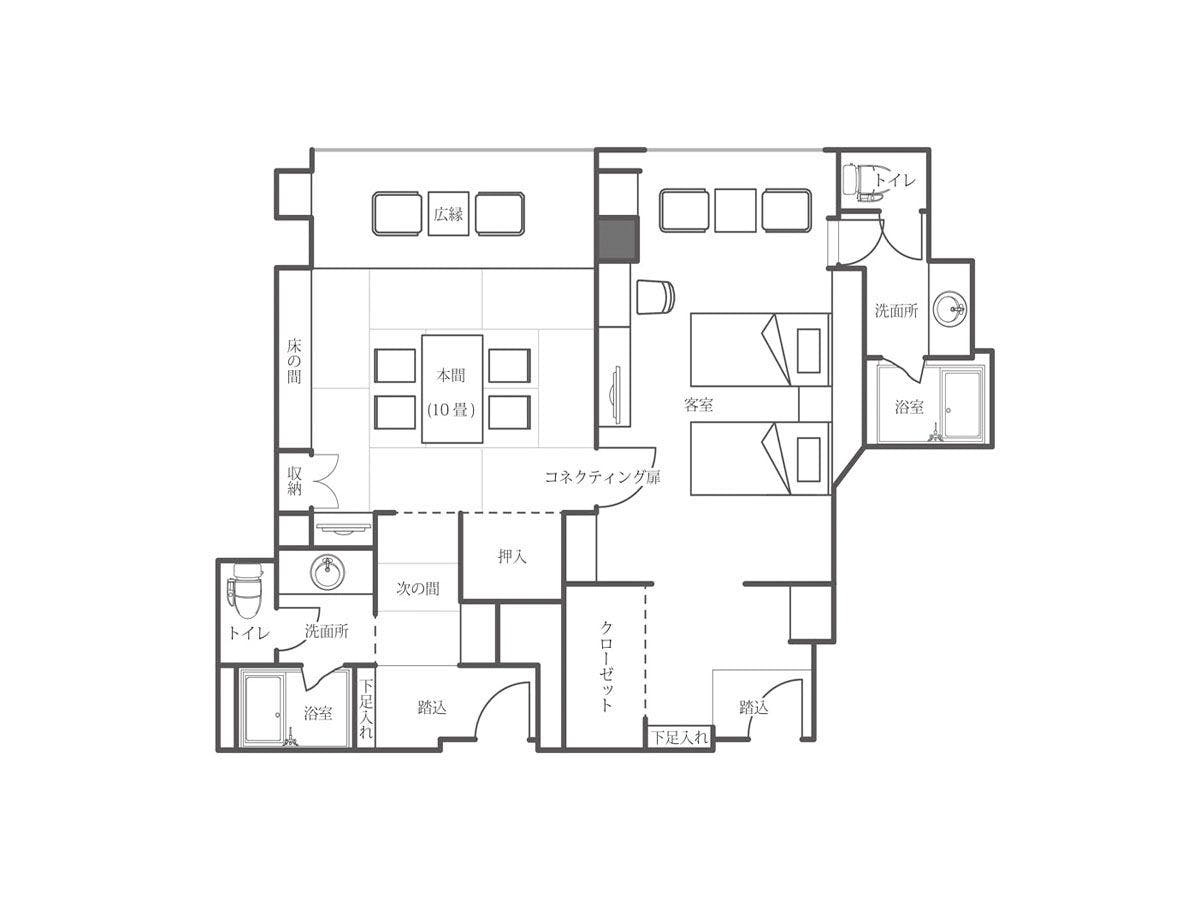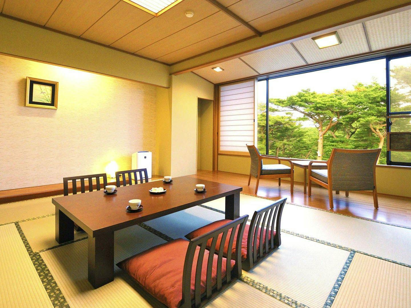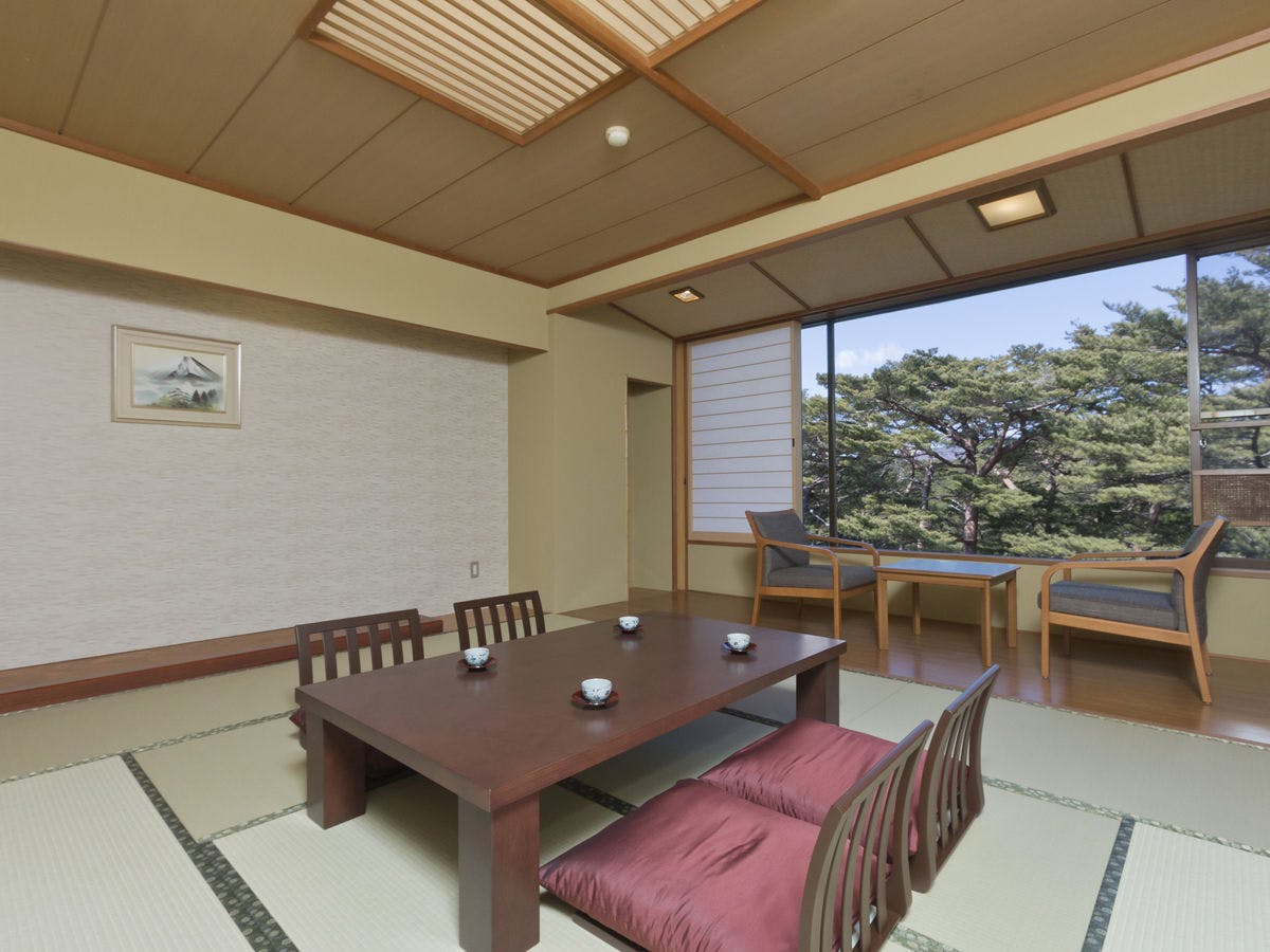 ロイヤルスイートルーム(特別室)は、宮古湾・太平洋を臨むことができるお部屋となっております。 広々とした和室の他、ベッドルームもございます。ゆったりとした雰囲気の中で、特別な一日をお過ごし頂けます。お部屋は、和室10畳が二間に、17平方メートルの洋室ツインベットに、18平方メートルの広縁に加えて、バス・トイレ・洗面スペースとなります。※当ホテルは「全室禁煙」となります。館内2カ所の喫煙コーナーがございます。