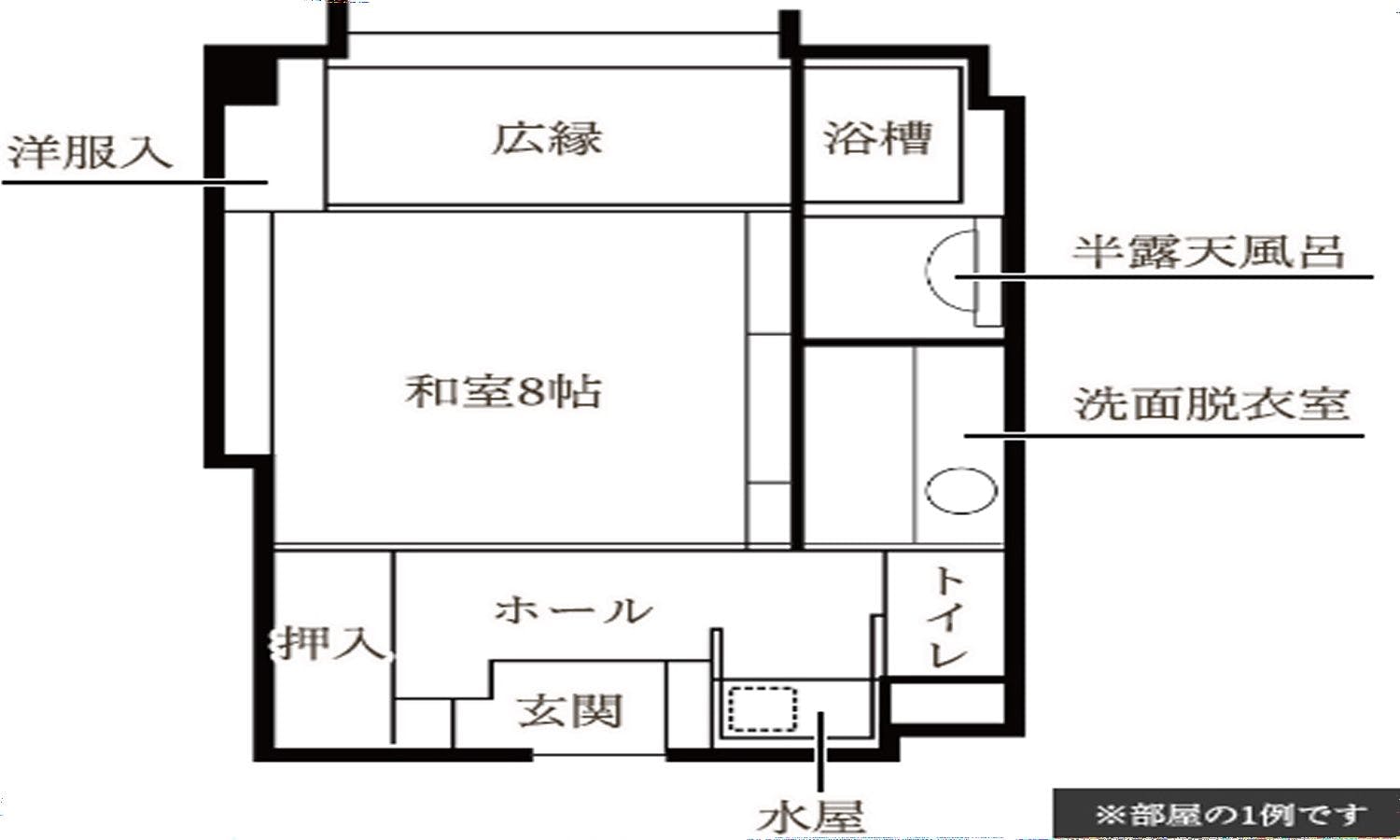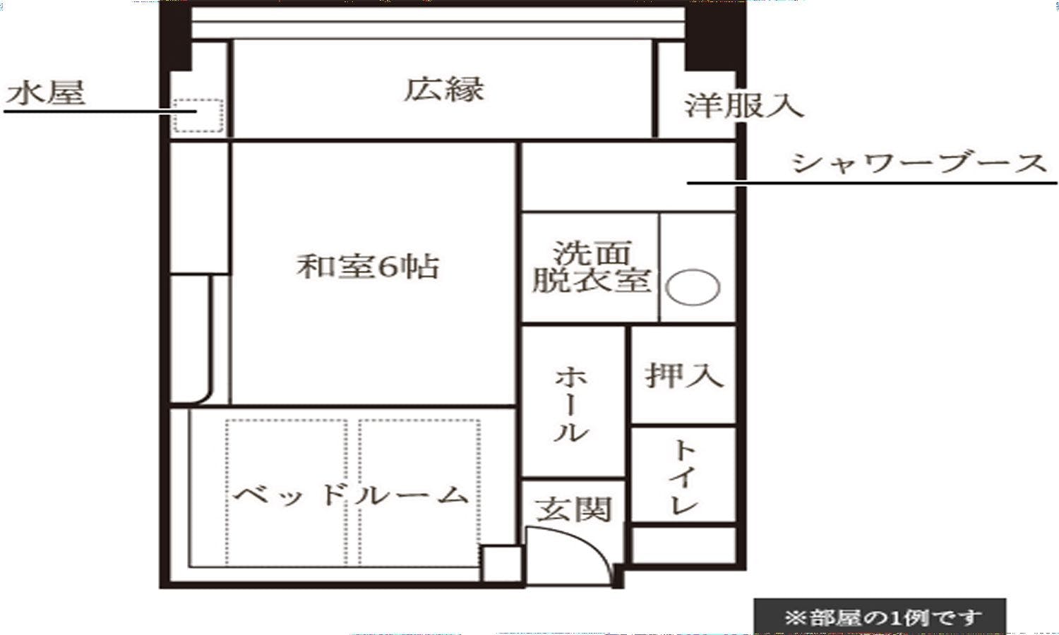 ベッドルーム・リビング・和室6帖・半露天風呂・トイレ