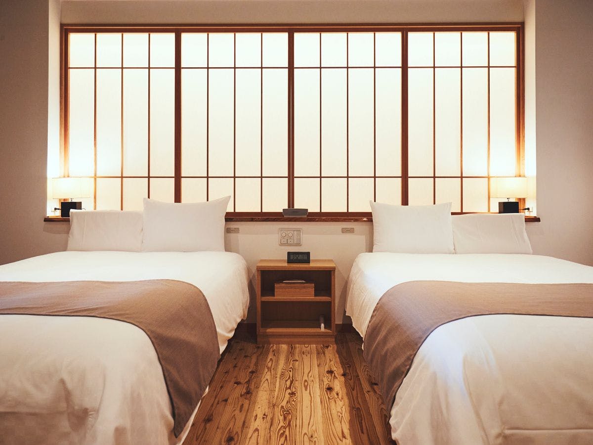 ・客室内に備え付けられた家具は、柏木工の家具や、シモンズの最上級クラスを中心にご用意しております。