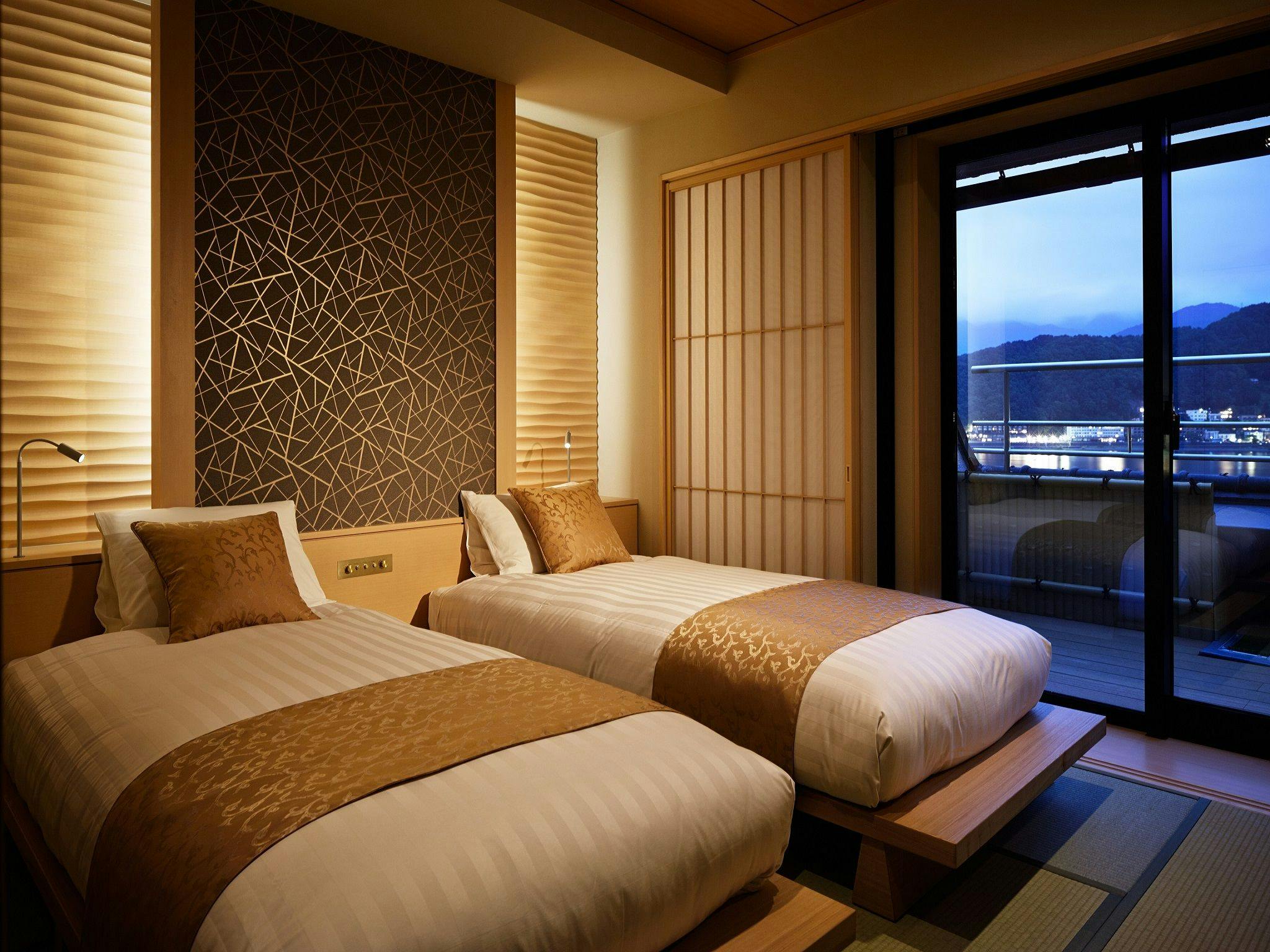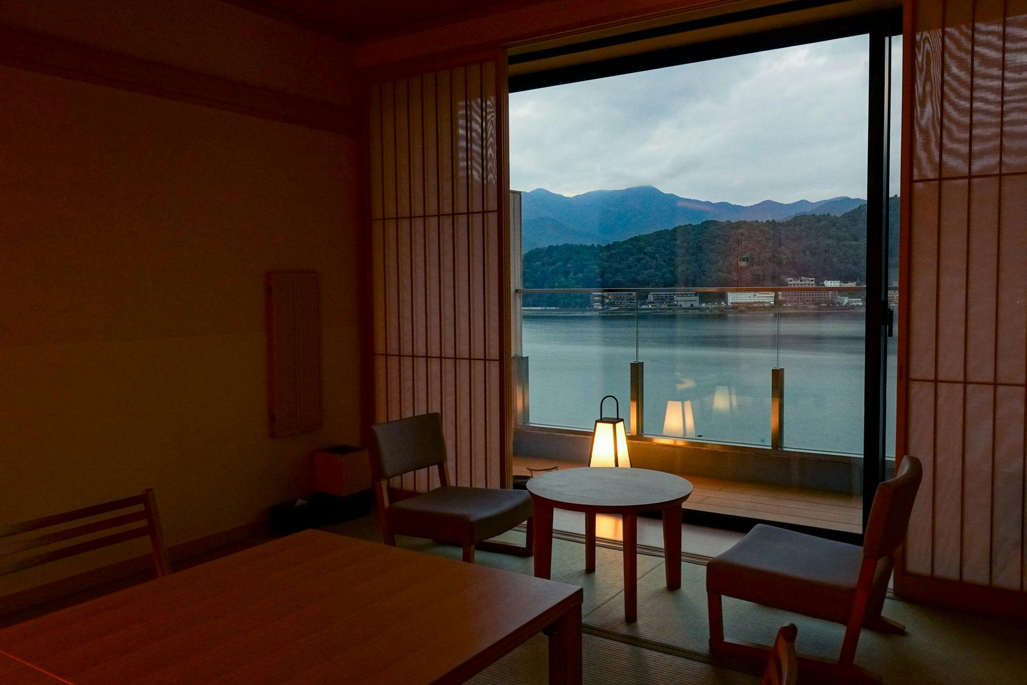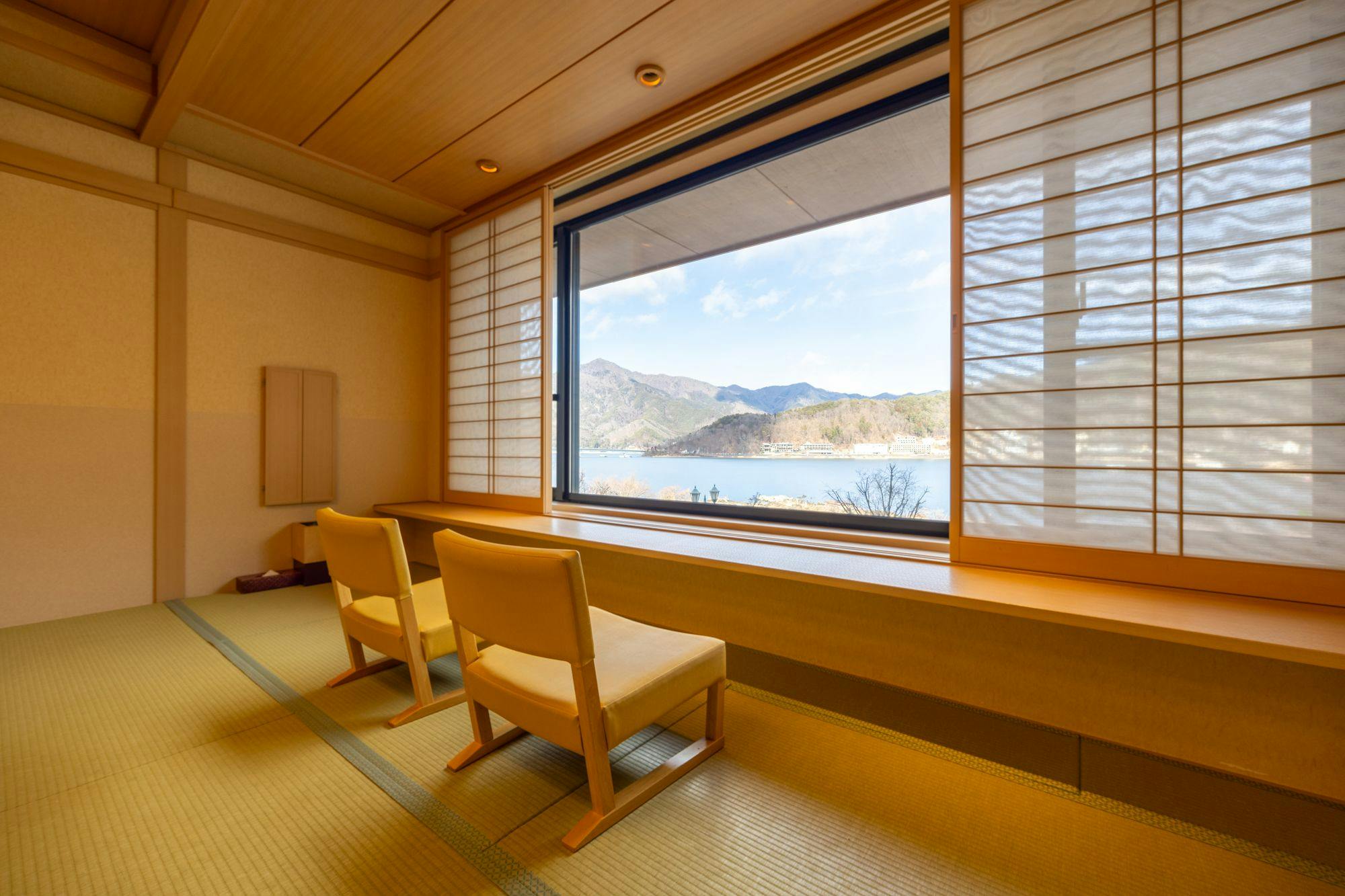 ・客室からの眺望は河口湖をご覧いただけます(※富士山はご覧いただけません)。