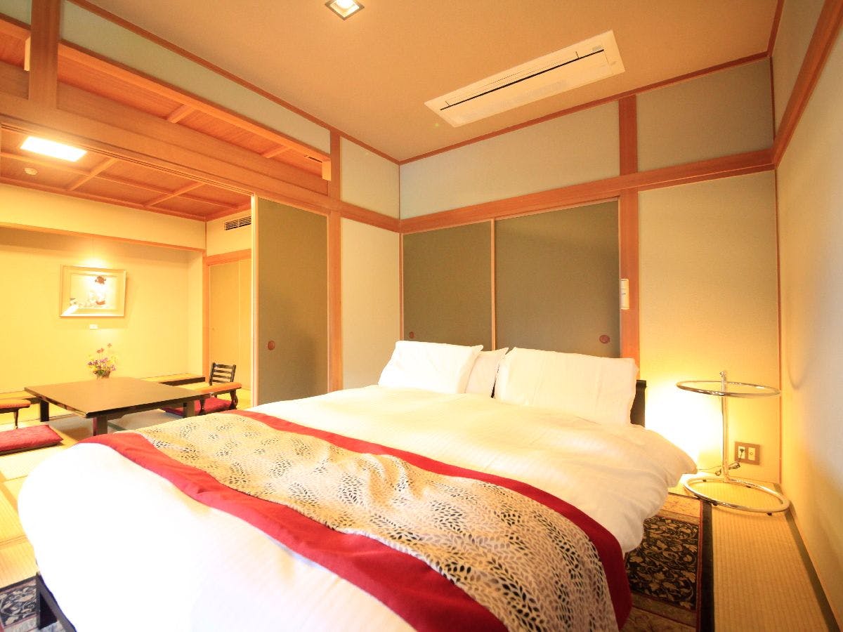 和室12畳+7.5畳の2間と、幅140cmのダブルベッドがございます。