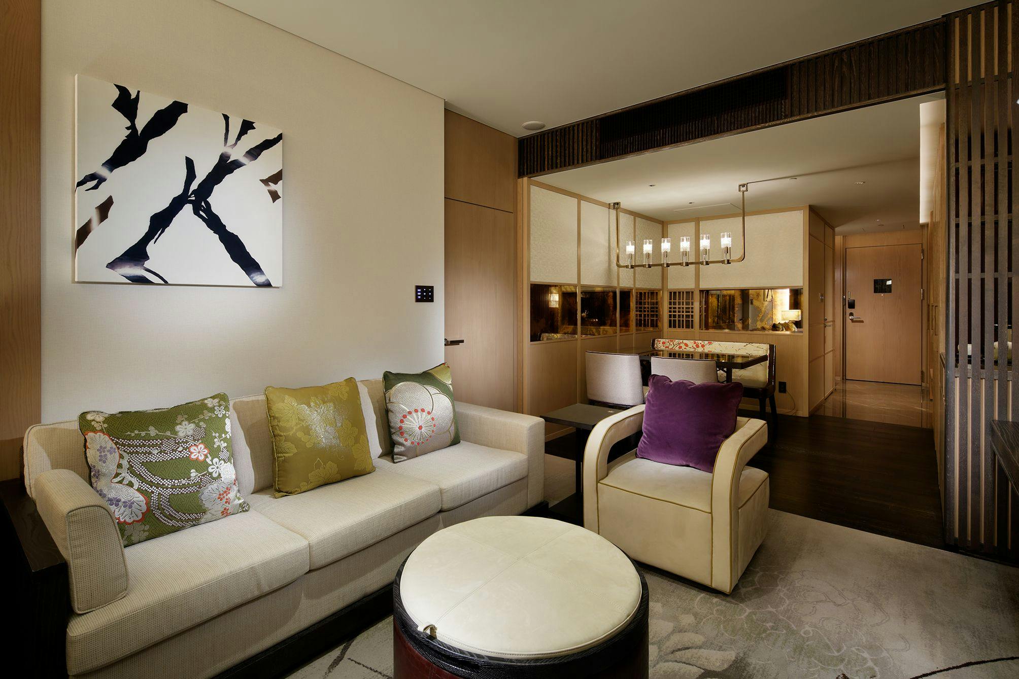 歴史ある積翠園を望む2ベッドルームを備えた客室は、自然の光に包まれた贅沢な空間。滞在するたびに異なる季節の魅力を満喫いただけます。4名様でご利用いただけるリビングルームと2つのバスルームを備えており、ご家族またはカップルでの京都滞在をより快適にお過ごし頂けます。