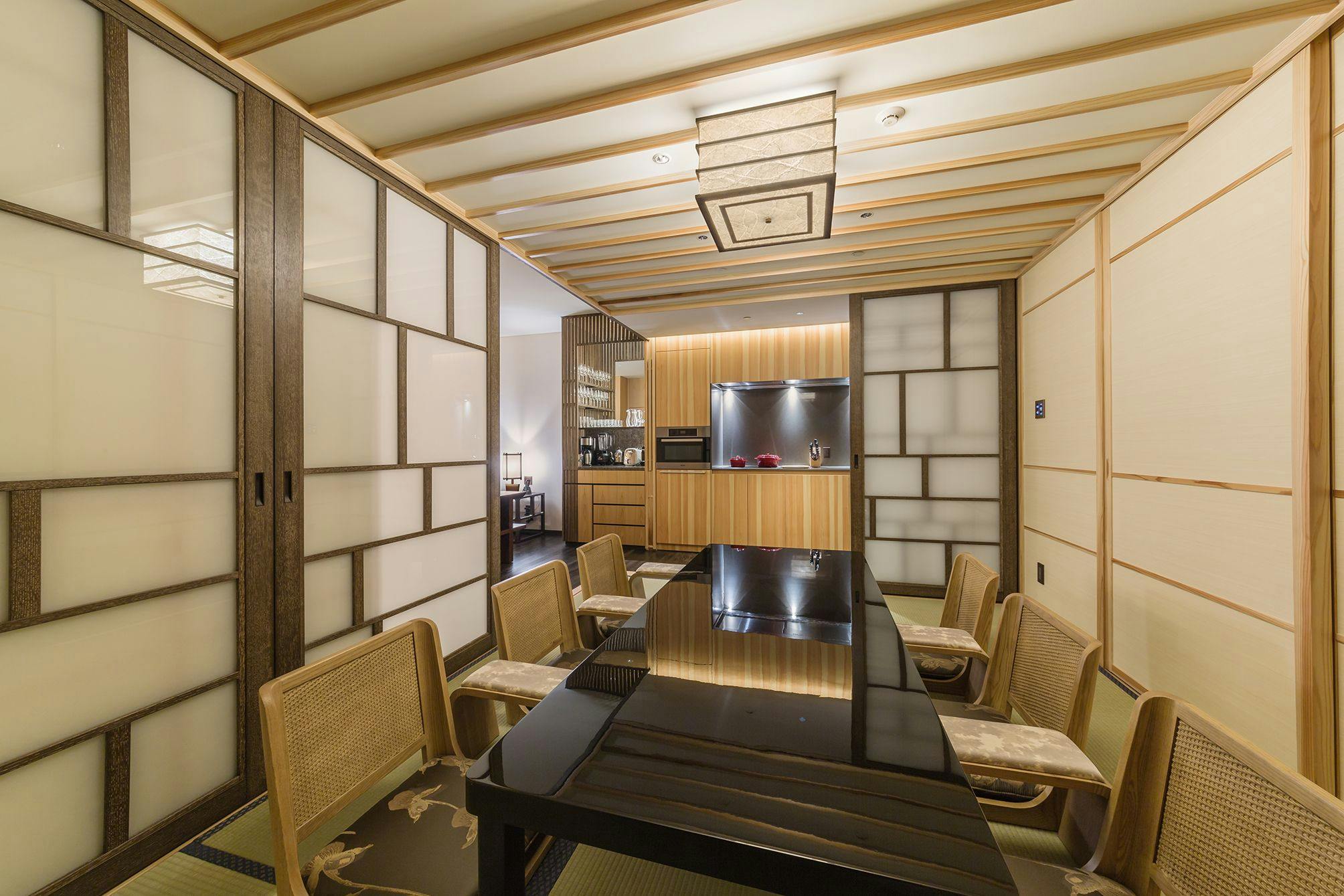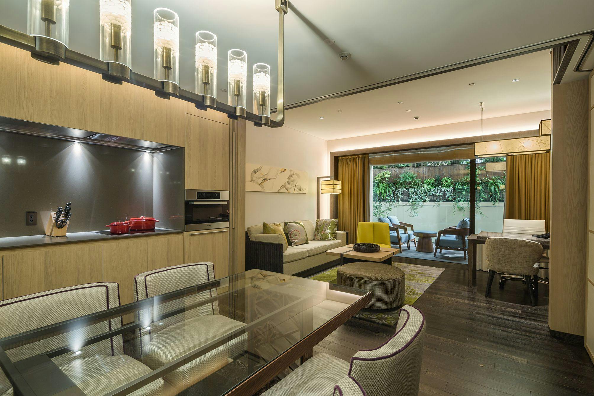 1階・2階に位置する1ベッドルームホテルレジデンス。ゆったりとしたリビングルームと静かなベッドルーム、畳敷きのダイニングルームが備わり、和の安らぎを感じていただけます。(畳ダイニングルーム用の布団のご用意はございません。備え付けのベッドにてご就寝いただいております。)