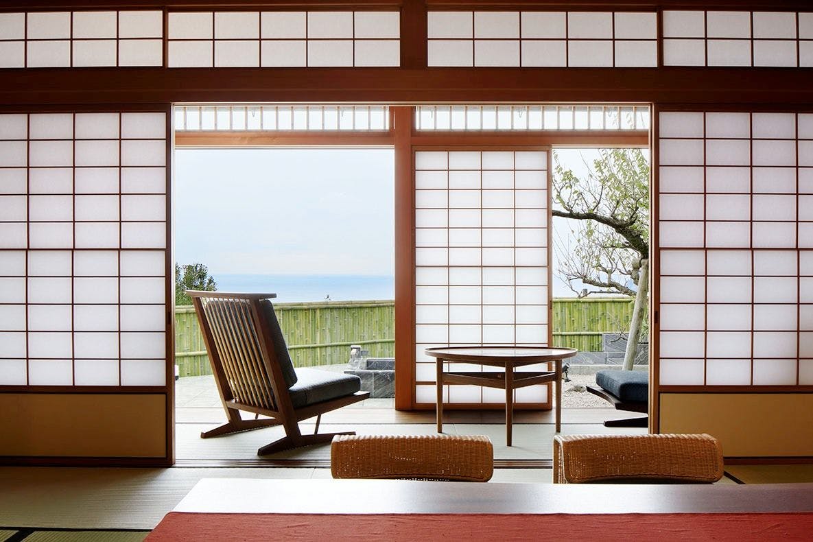 数寄屋造りの美しい「松の間」は、居間と寝室をメインに、内風呂、露天風呂が付いております。露天風呂から望む景色は雄大で、相模湾を一望する海と空のパノラマが広がり、海と一体化したような気分を満喫いただけます。日本の美を存分に感じていただける空間です。
