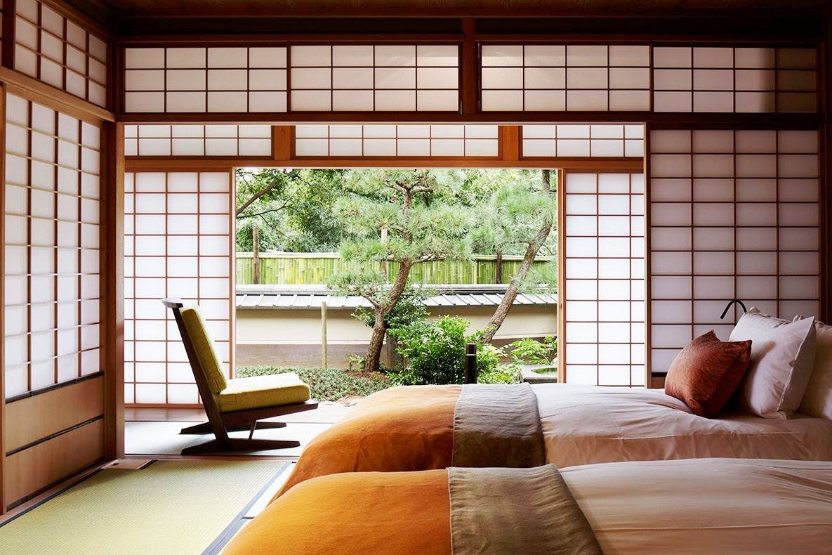 数寄屋造りの美しい「梅の間」は、居間と二つの寝室をメインに、内風呂、露天風呂が付いております。居間や露天風呂からは時間帯によって表情を変える海と空、また寝室からは熱海城が望めます。季節の移ろいを感じながら、ゆったりとお寛ぎいただけます。