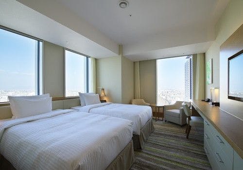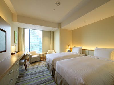 最大3名様でご利用いただけるコーナーツインです。また、お風呂は窓があるビューバスタイプです。