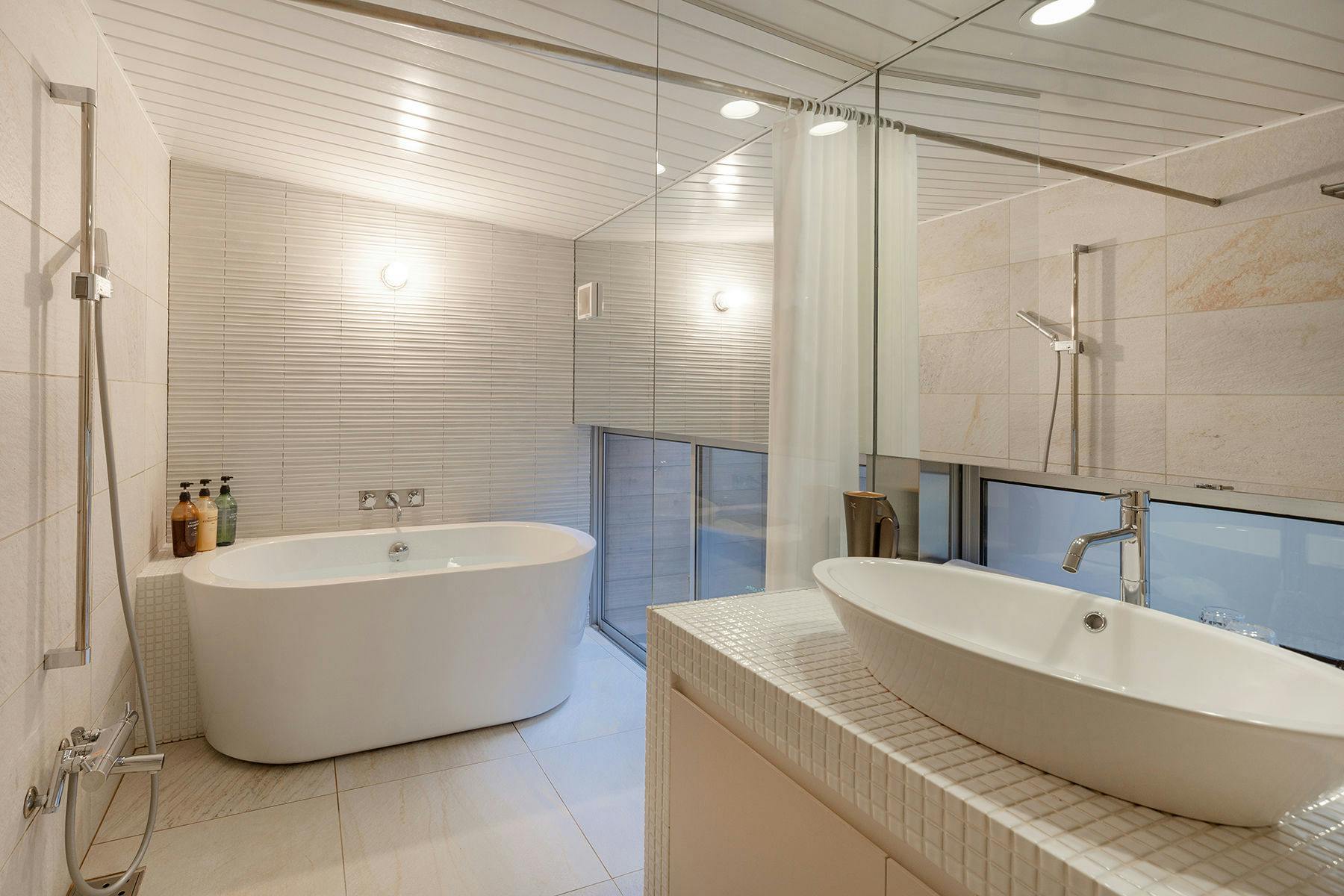 飲水用水栓には浄水器を設置し、空気清浄機も完備。トイレは温水ウオシュレット、バスルームはセパレート、ドレッシングルームも独立しています。