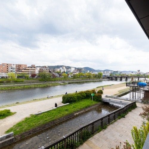 景勝地「鴨川」や中庭の自然豊かな風景を臨む客室。古都に調和する和の風情をちりばめたデザイン。大浴場を完備し、非日常的で贅沢な癒し空間をご提供します。