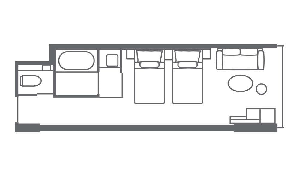 ワンランク上の贅沢なスーペリアコーナーツイン。広々としたお部屋でゆっくりとお寛ぎいただけます。(お部屋によって間取りが異なります)※客室は全て禁煙です(館内に喫煙スペースあり)
