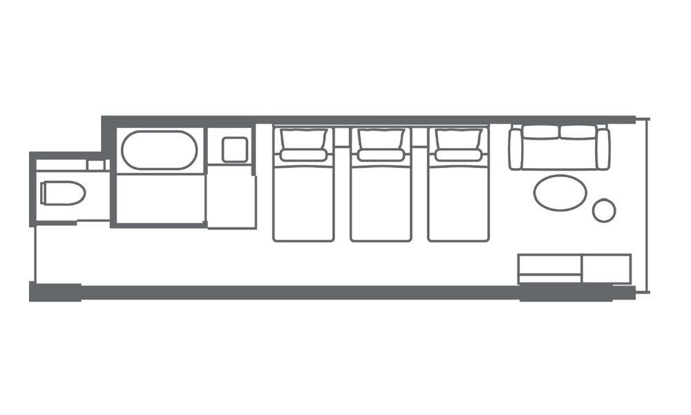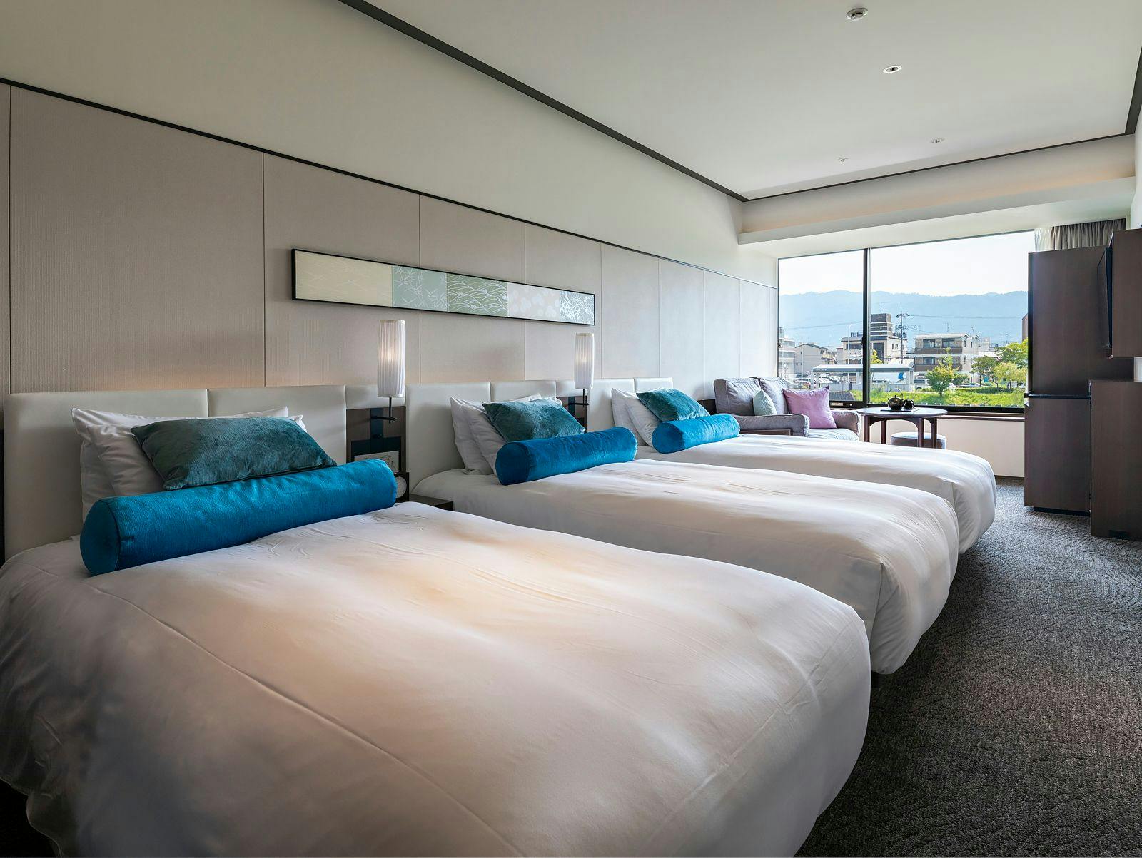 お部屋から鴨川がご覧いただける当ホテル自慢の鴨川トリプル。鴨川沿いのお部屋で、ご家族やお友達と楽しくお過ごしください。※2019年12月1日より部屋タイプ名を変更いたしました。※客室は全て禁煙です(館内に喫煙スペースあり)※エキストラベッドではなく3台同じベッドのご用意です