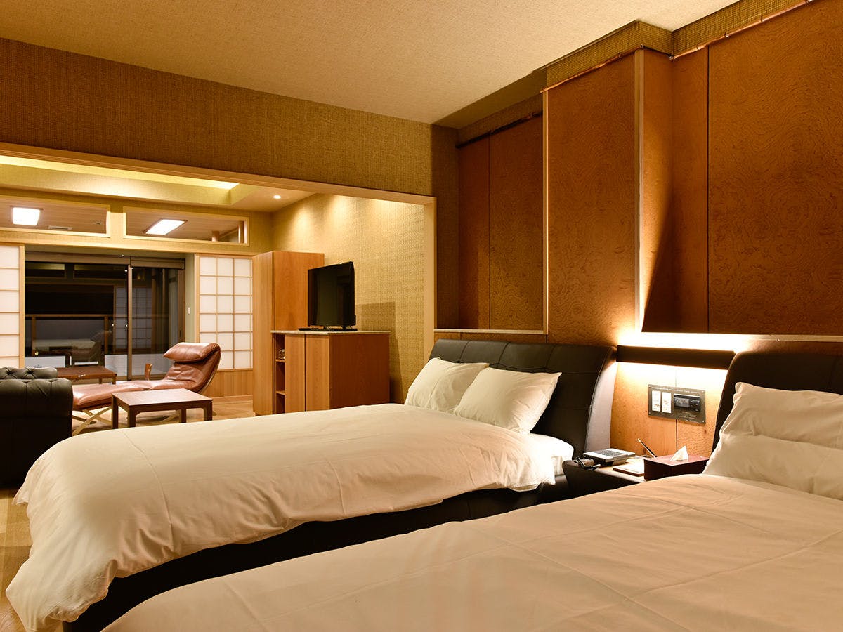 限定1室の143平米の特別室は露天風呂付・和洋室。