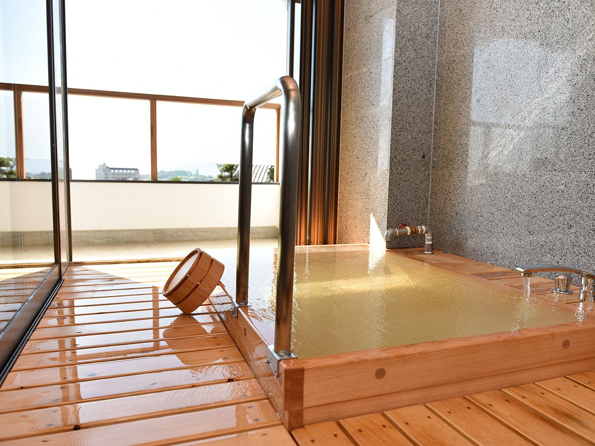 温泉は檜内湯と、開閉可能な大きな窓が付いた半露天の檜風呂付。