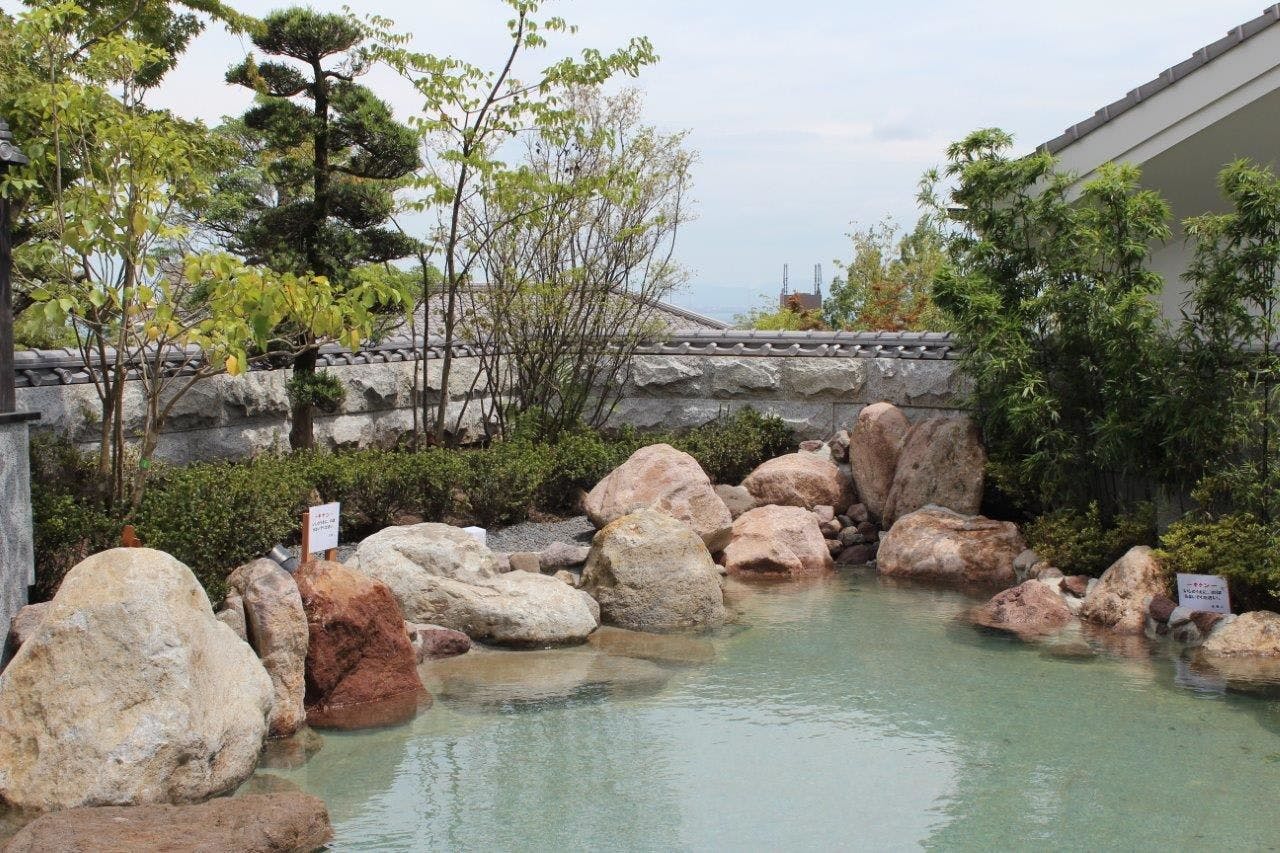 日本伝統の「能楽堂」や「茅葺の茶室」を苑内に設け、庭園には歴史的な史跡や石塔も有する。源泉掛流しの神秘の湯につかり、大分の旬の食材を丁寧にあつらえた食事に舌鼓。
