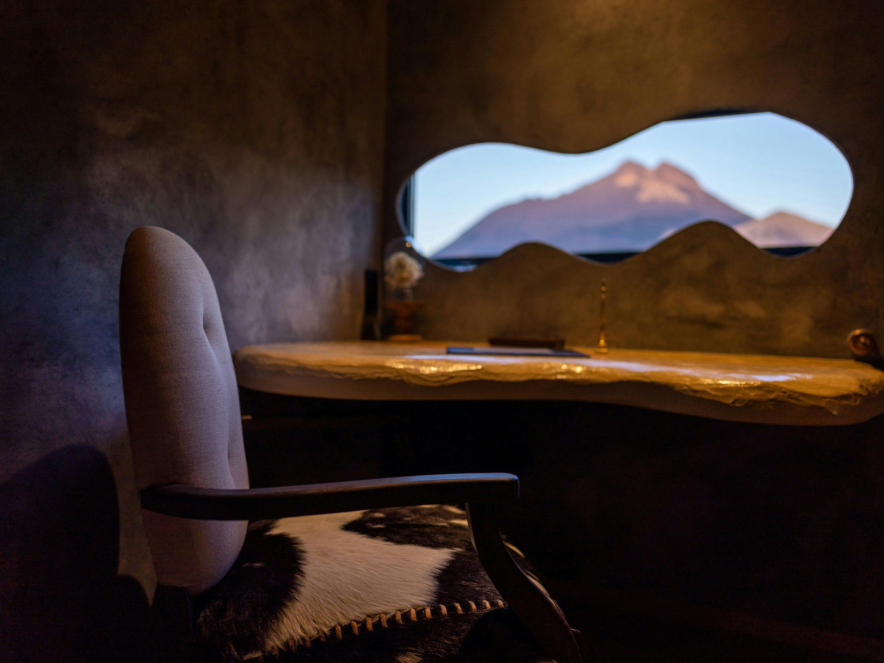 無機質な石をモチーフにデザインした外観に広々ダブルサイズのベッドを2台備えた特別空間。