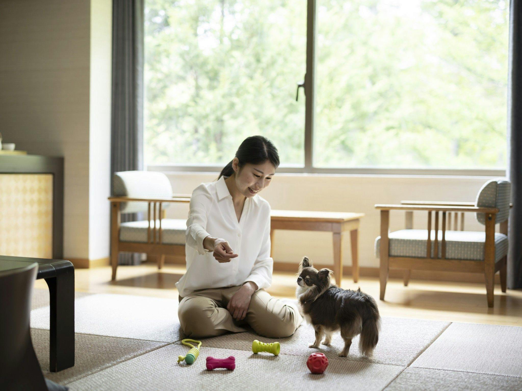 ※同伴できるワンちゃんは、小型犬(10キロ以下)1頭となります。