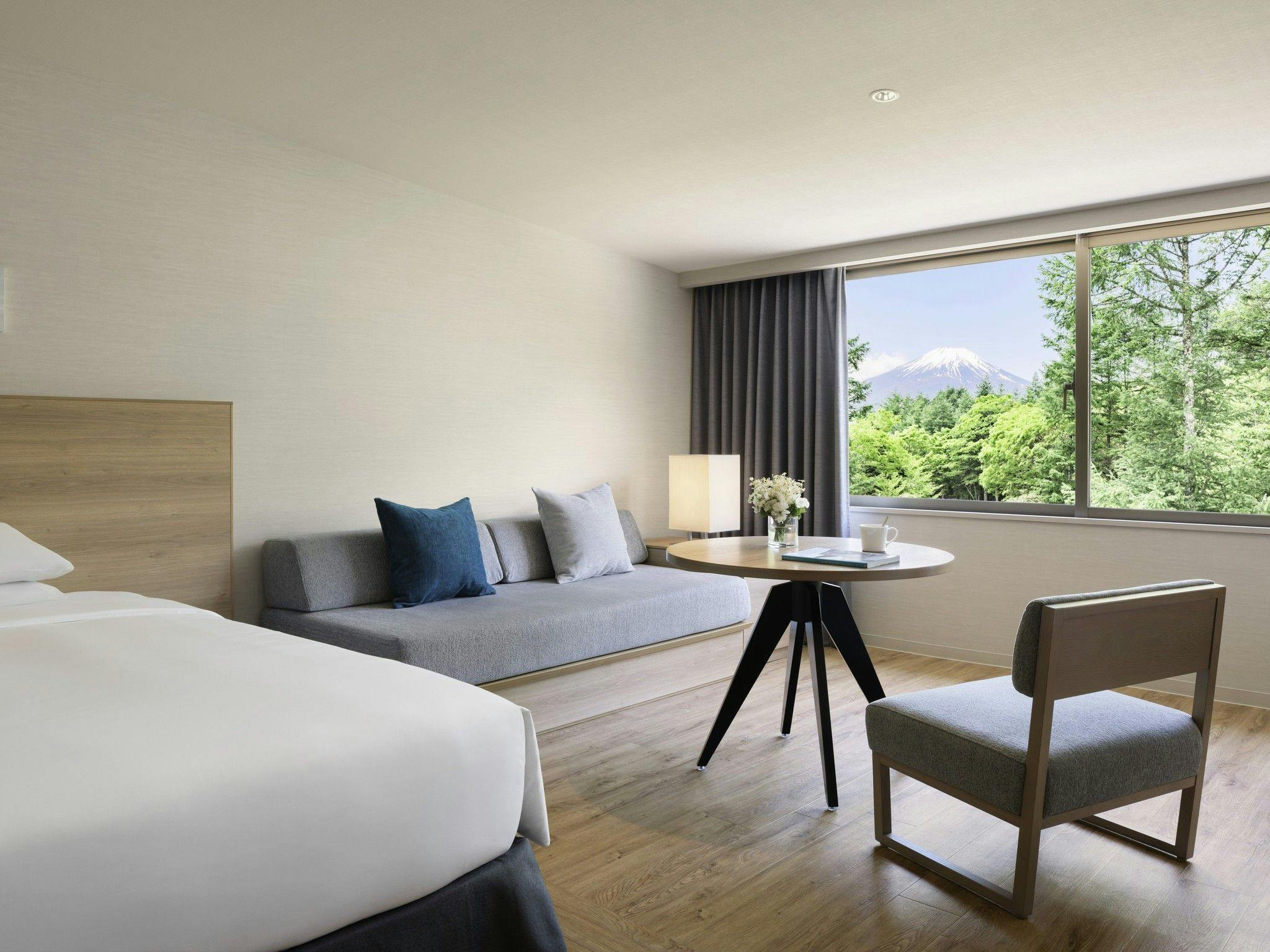山中湖温泉を独り占めできる温泉浴室が付いたお部屋。清爽な雰囲気に包まれた室内で満ち足りた時間を。
