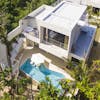 お客様のくつろぎを演出する、広々LDKとツインタイプのベッドルームが2部屋、バスルーム完備。ベッドルームはテラス側と玄関側に1部屋ずつあり、4名様でもゆったりとおくつろぎいただけます。テラスは海に面し直接、プールやお庭へお気軽にお出かけいただけます。他では味わえない優雅な空間でゆったりした時間をお過ごしください。