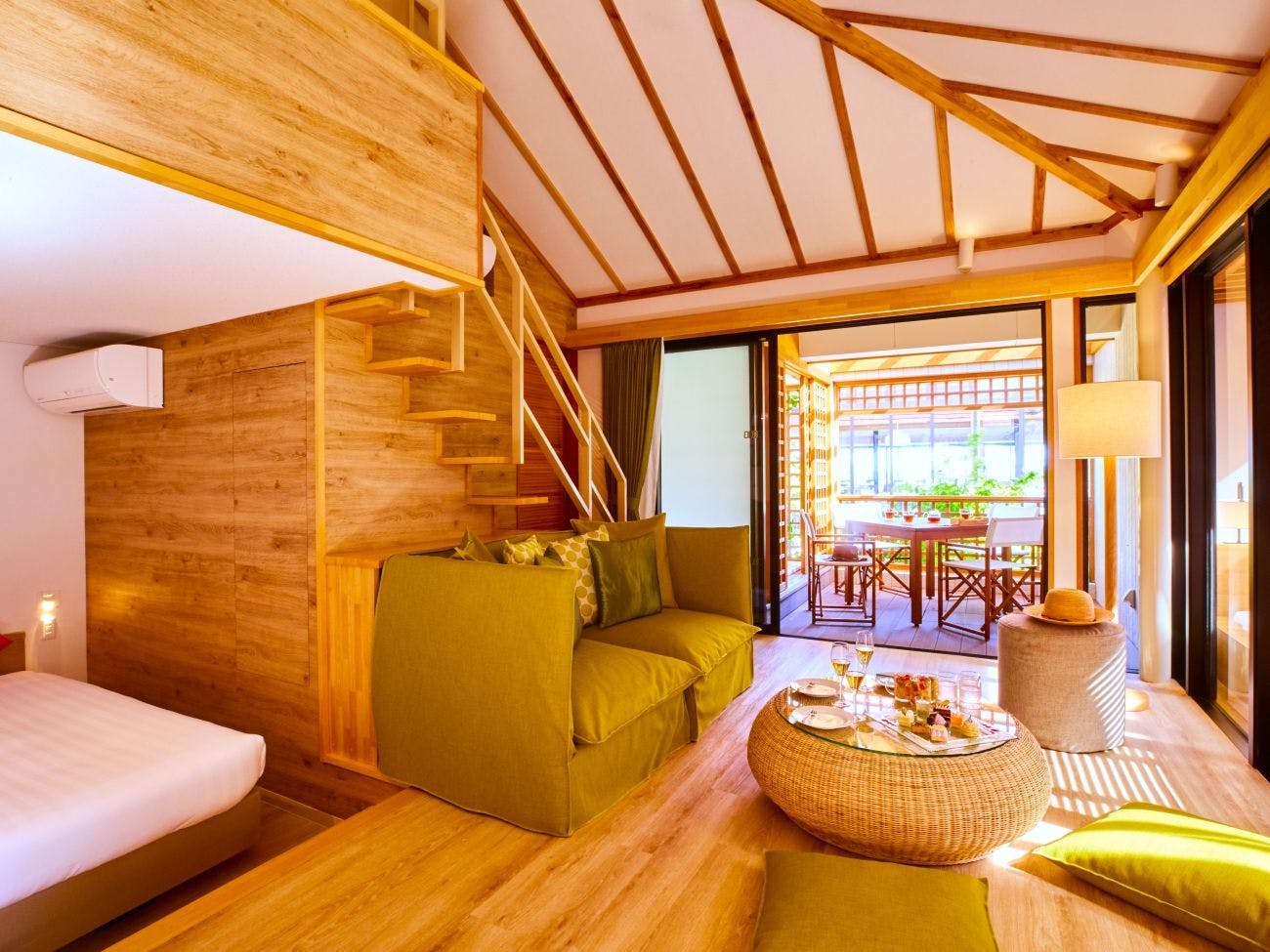 客室の広さは室内42平米(+ロフトつき)+テラス10平米、全室ジェットバス、洗濯機つき、2ベッドルームです。