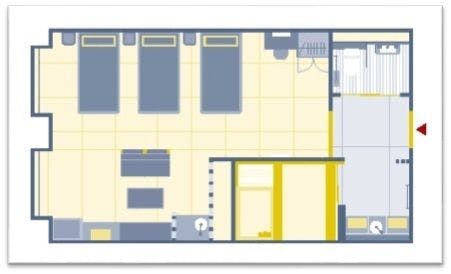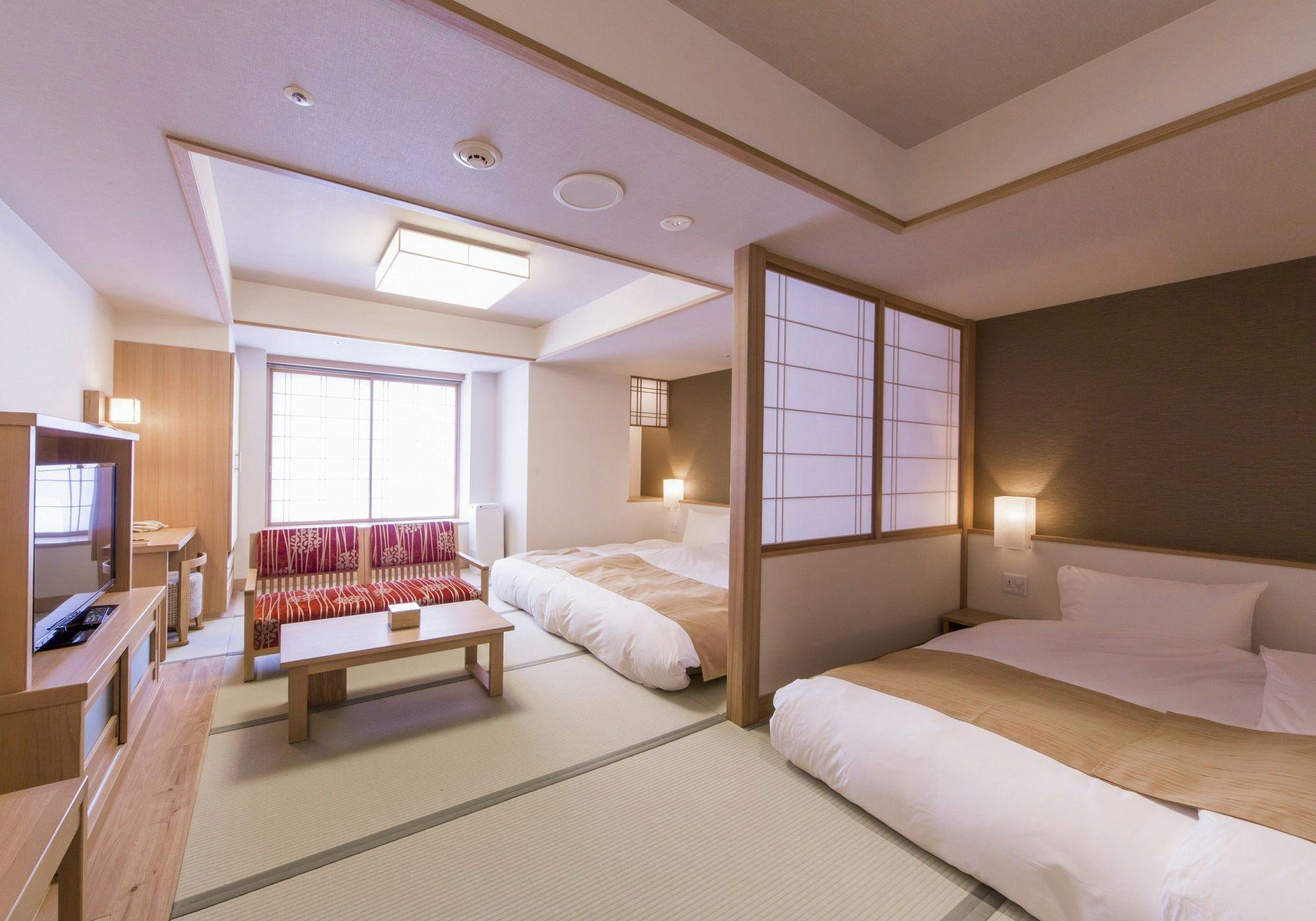 48平米のゆとりある空間に和ベッド3台を並べ、3名様でゆったりとお泊りいただけるお部屋です。