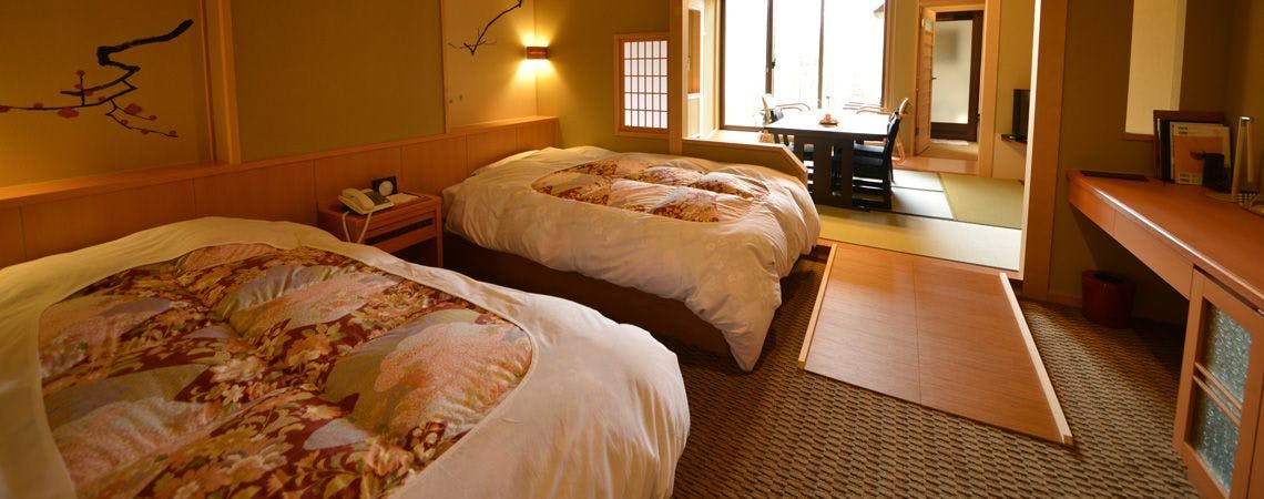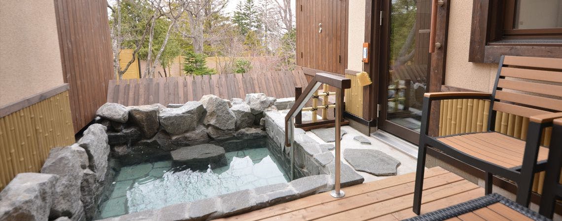 ・全2室の露天風呂付和洋室です。・お部屋はバリアフリーではございませんが、ツインベット2台と本間和室10畳の和洋室タイプです。・お部屋は禁煙でございますので喫煙スペースをご利用下さいませ。(注)カーナビでご利用の方は宏楽園で検索すると裏側に出てしまうのでご注意下さい。道道1号線沿いに「宏楽園」の門があります。目印はセイコーマートの横です。
