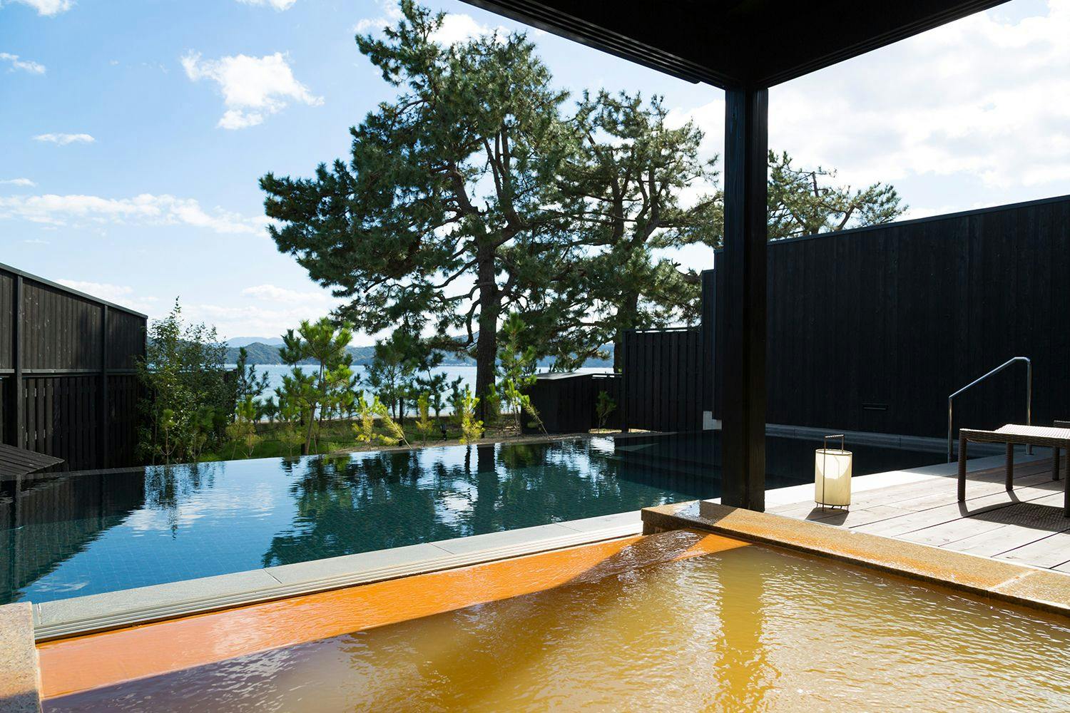 日本で初めて、2種類の天然温穏「金温泉・銀温泉」とプライベートプールがお部屋に付いている唯一の旅館です。