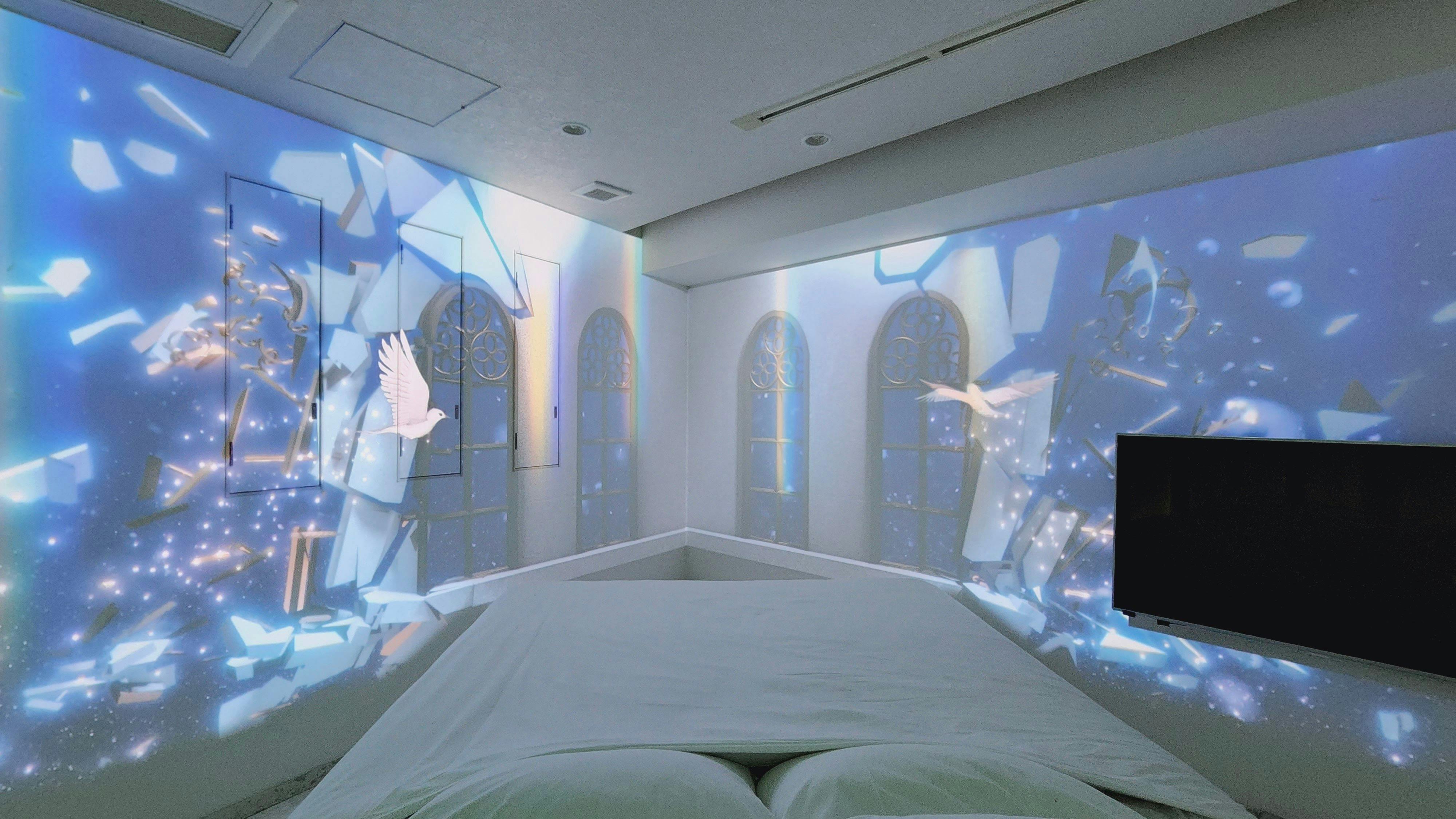 業界初の3Dマッピングルーム。お部屋に入ると驚くような演出をお楽しみいただけます。予想を超えた感動をお楽しみください。※海側ではございません。