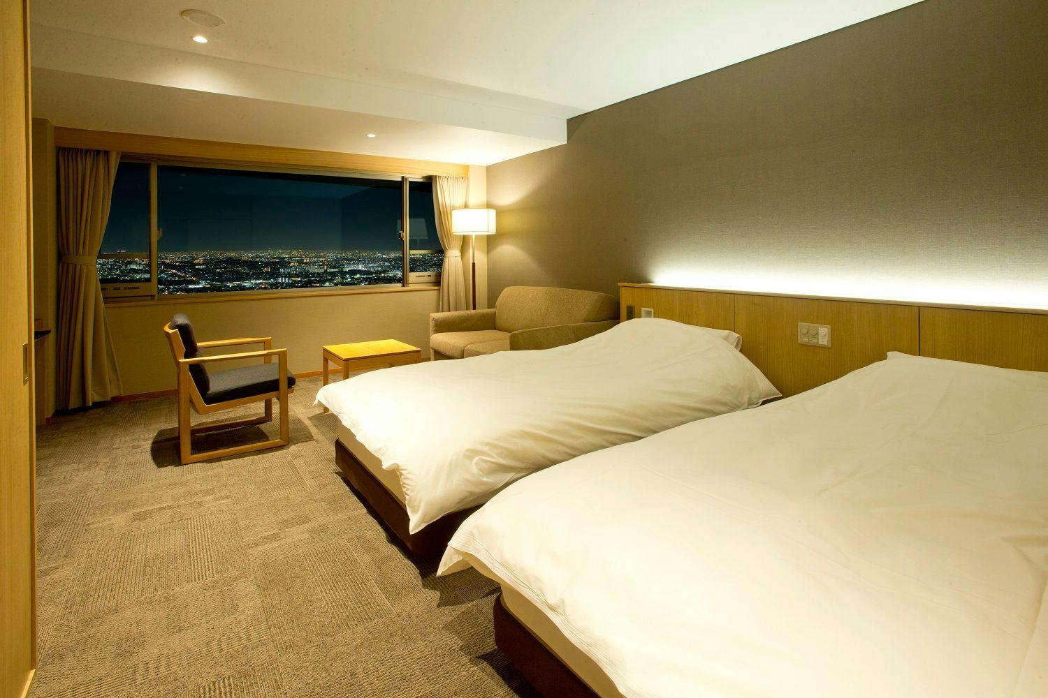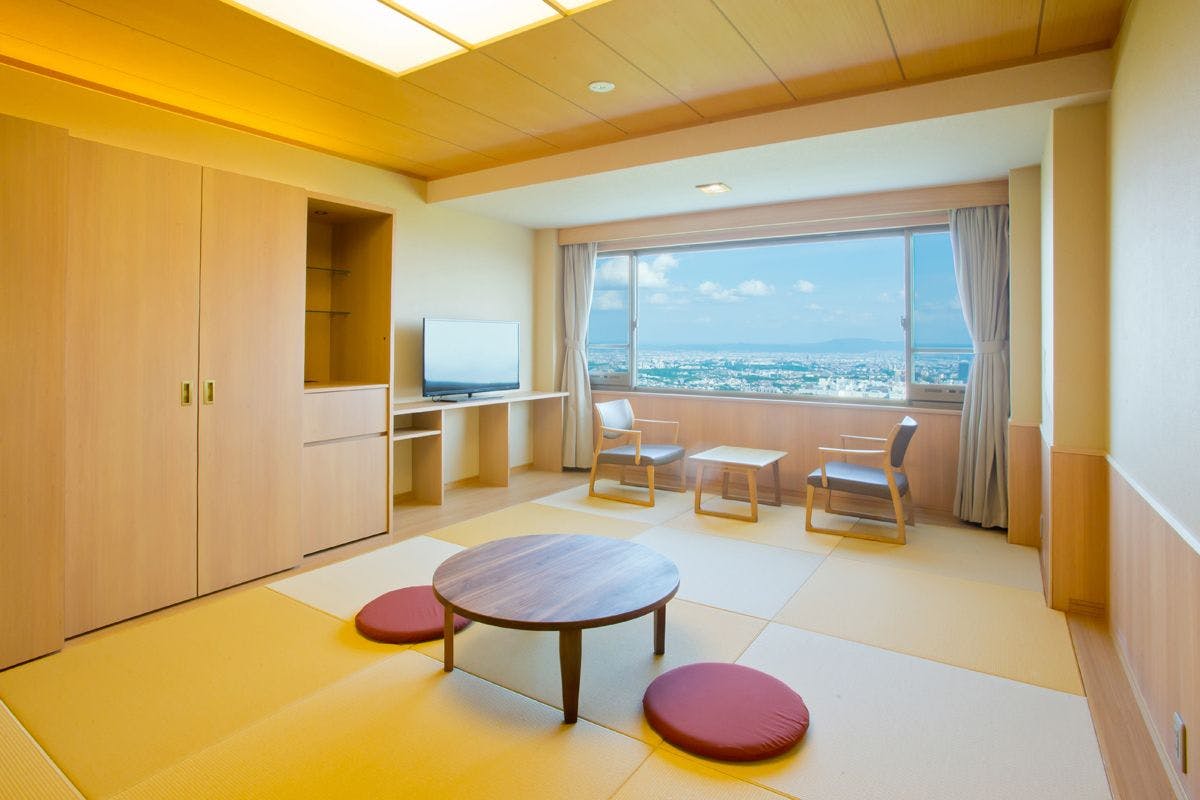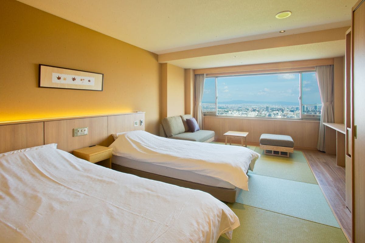 客室内のプライベートテラスでは森林浴や鳥のさえずりを聞きながら大阪平野の景色を、また夜には煌びやかな夜景をお愉しみいただけます。