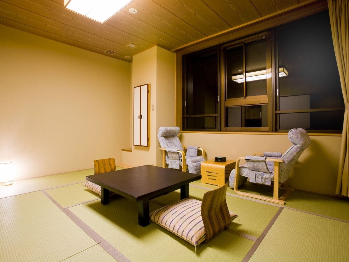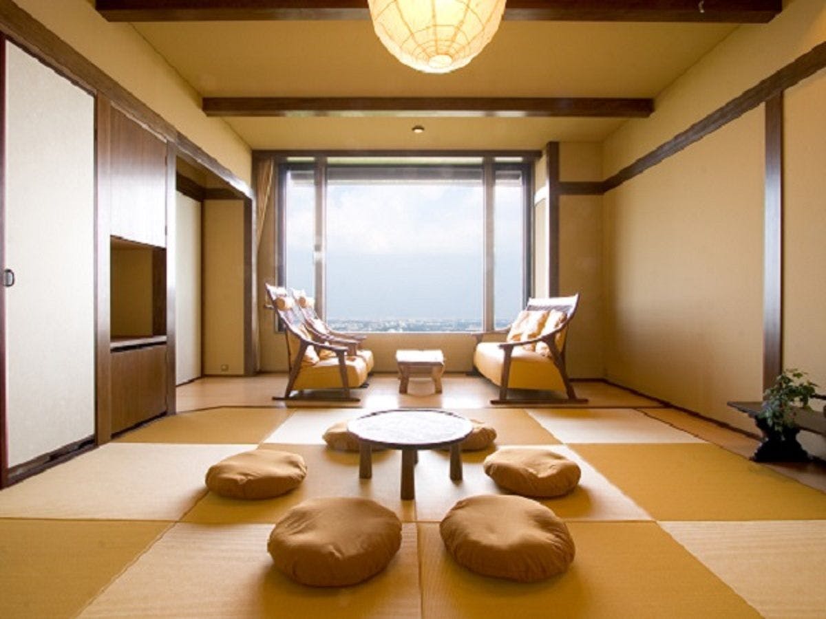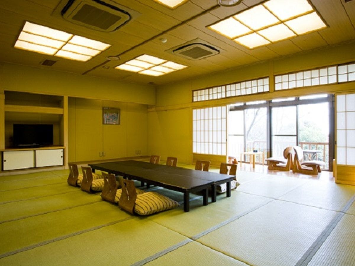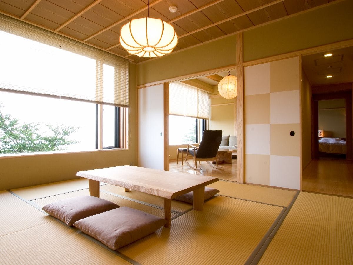 お部屋は本館地下一階にございますが、山の斜面に位置しておりますので、他の客室同様にお部屋から景色をご覧いただけます。どこか懐かしい広々とした和の空間で、家族での思い出作り、ご旅行のお仲間と素敵なお時間をお過ごしくださいませ。