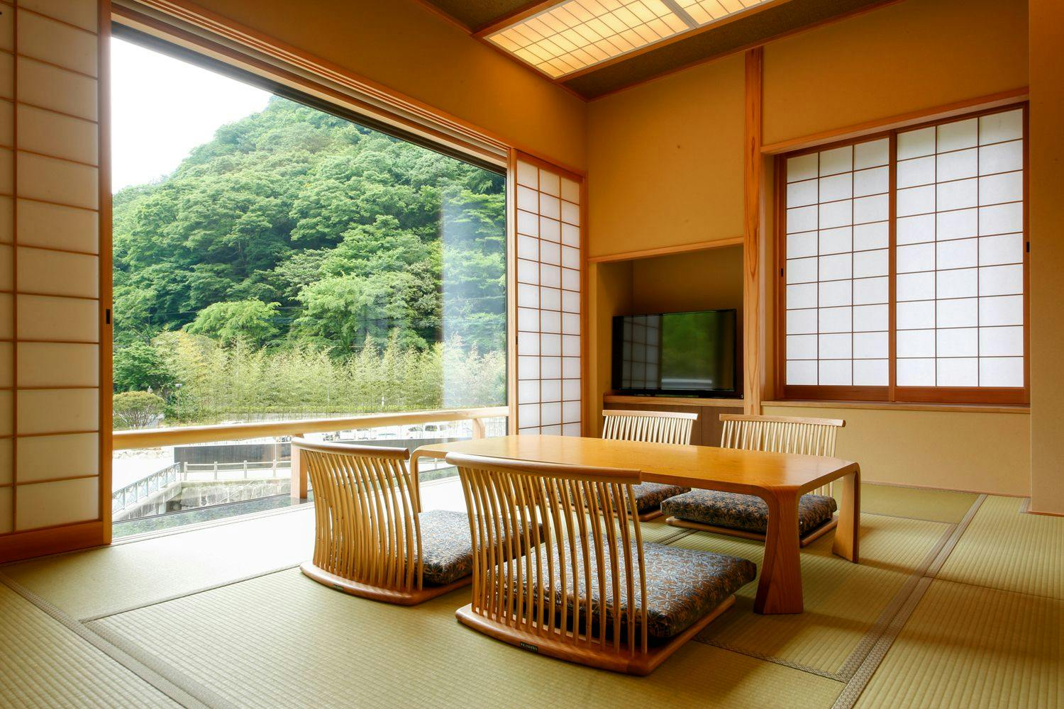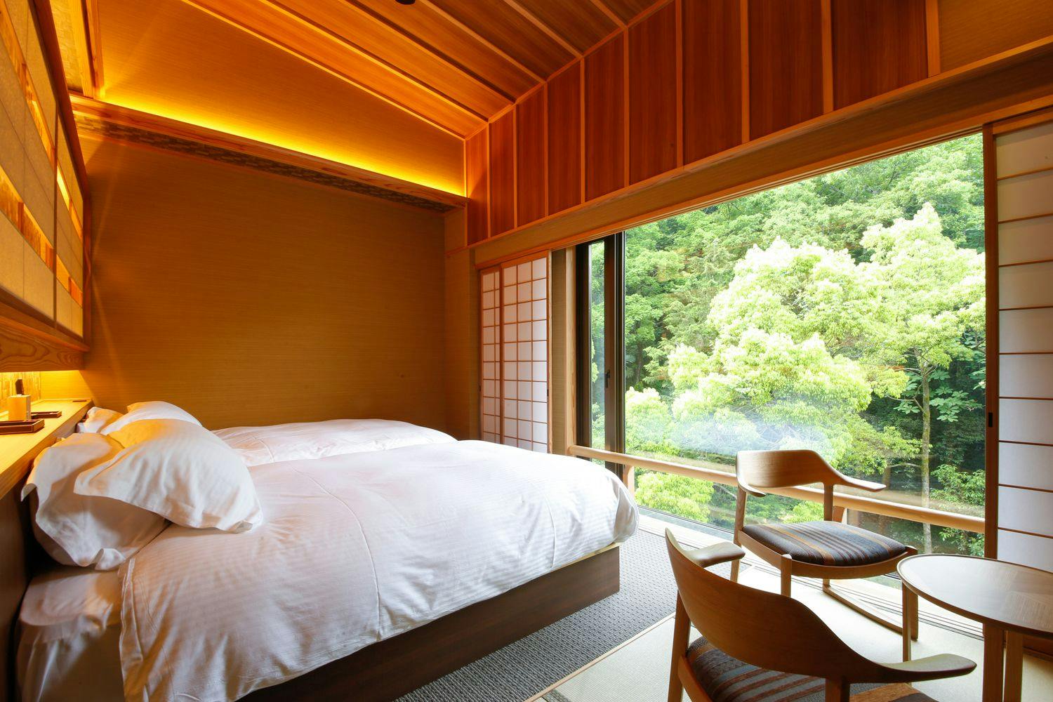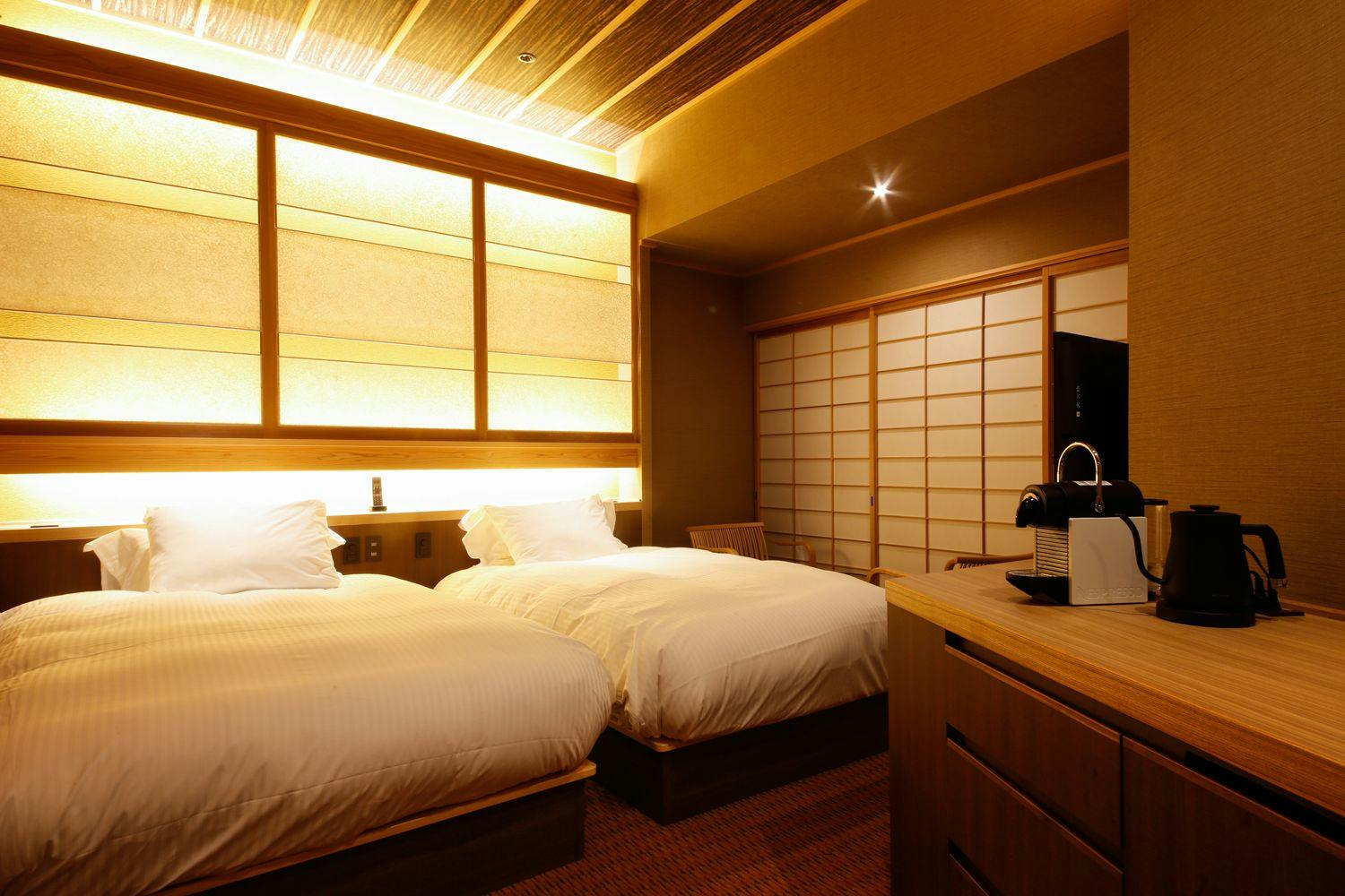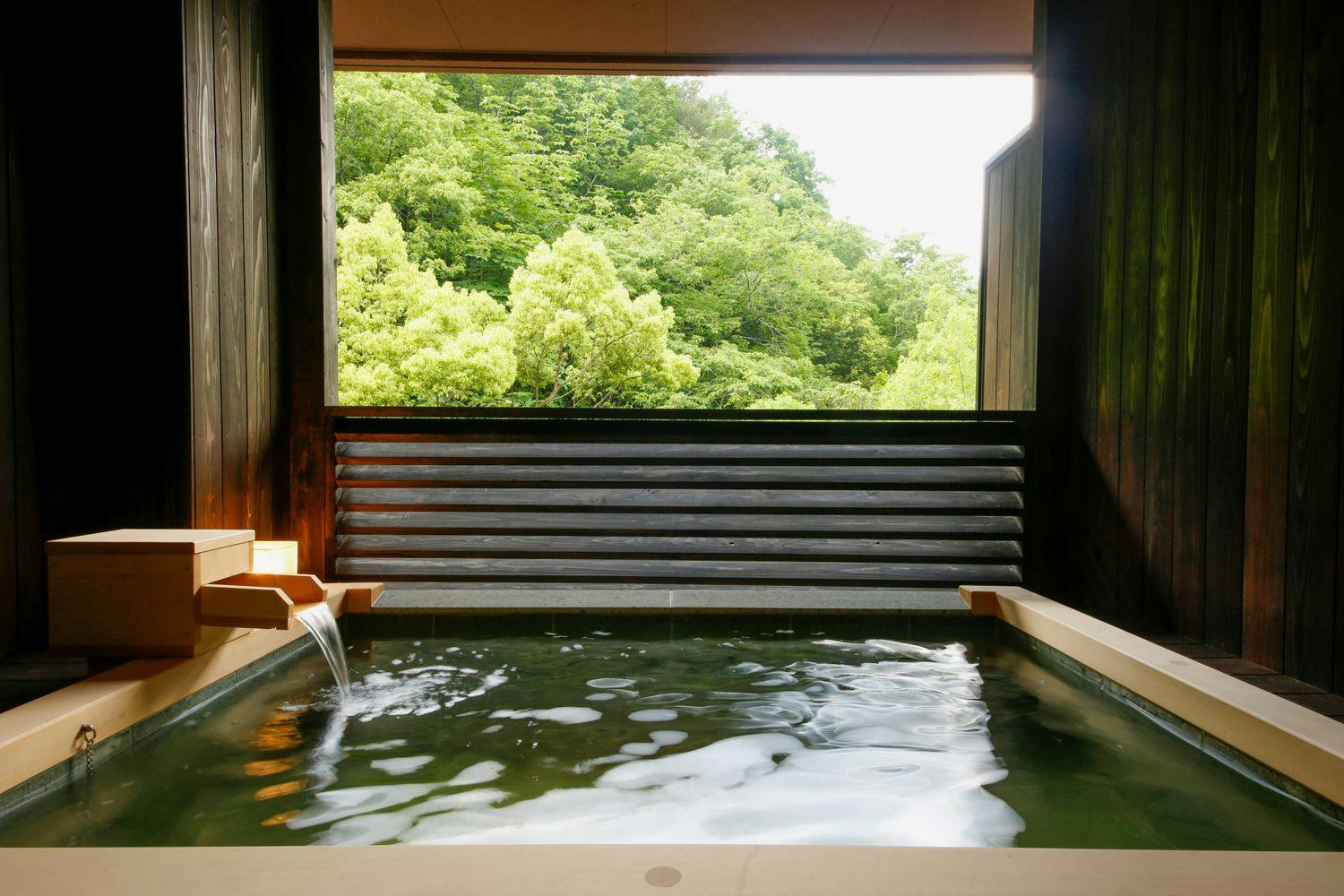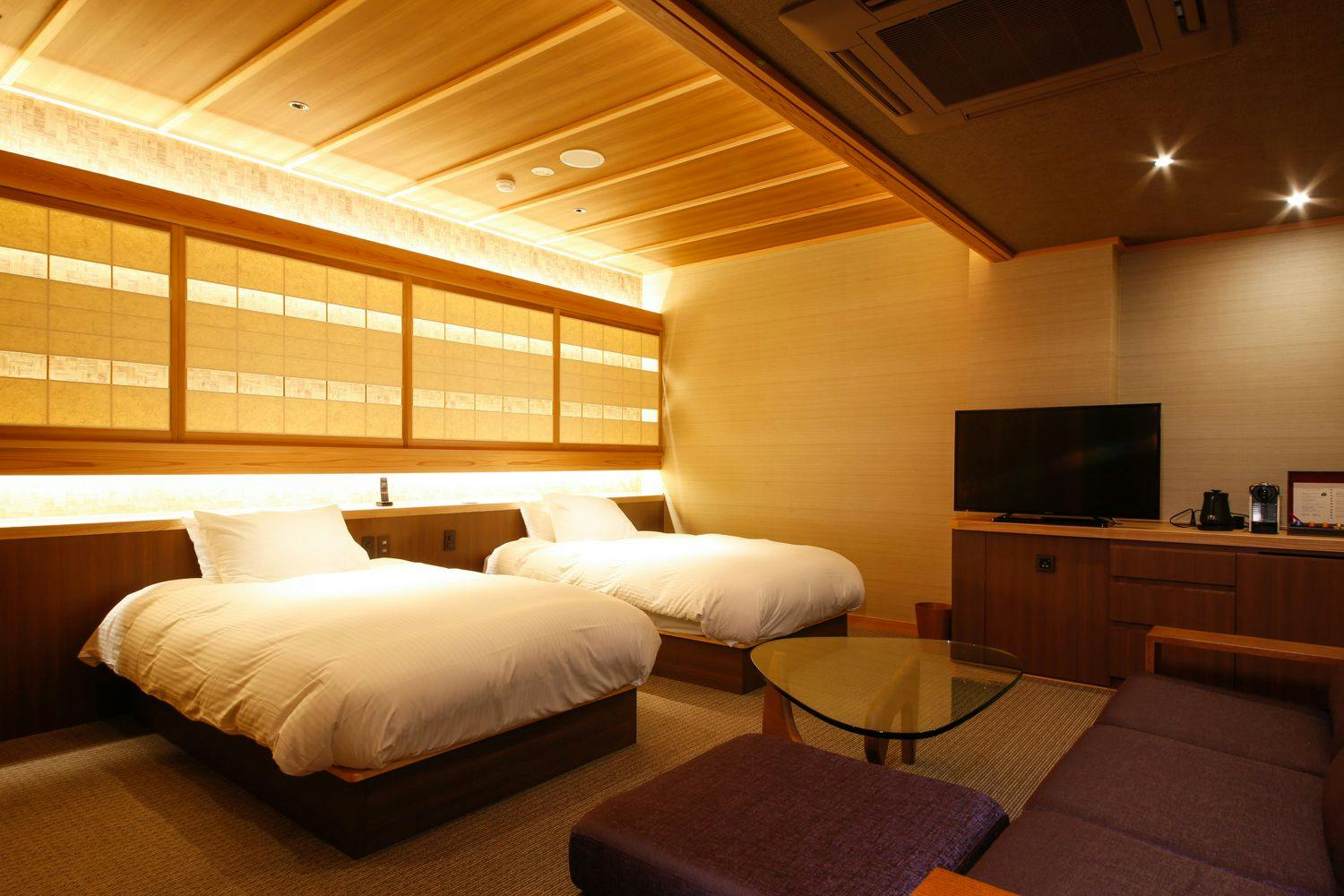 温泉露天風呂、独立型シャワーブース、洗浄機付トイレ、薄型液晶テレビ、TV接続用メディアハブ(USB・Bluetooth・HDMI)、インターネット接続無料(Wi-Fi)、電話、冷蔵庫(ミニバー)、コーヒーメーカー、電気ケトル、エアコン、加湿空気清浄機、ドライヤー、セーフティーボックスなど