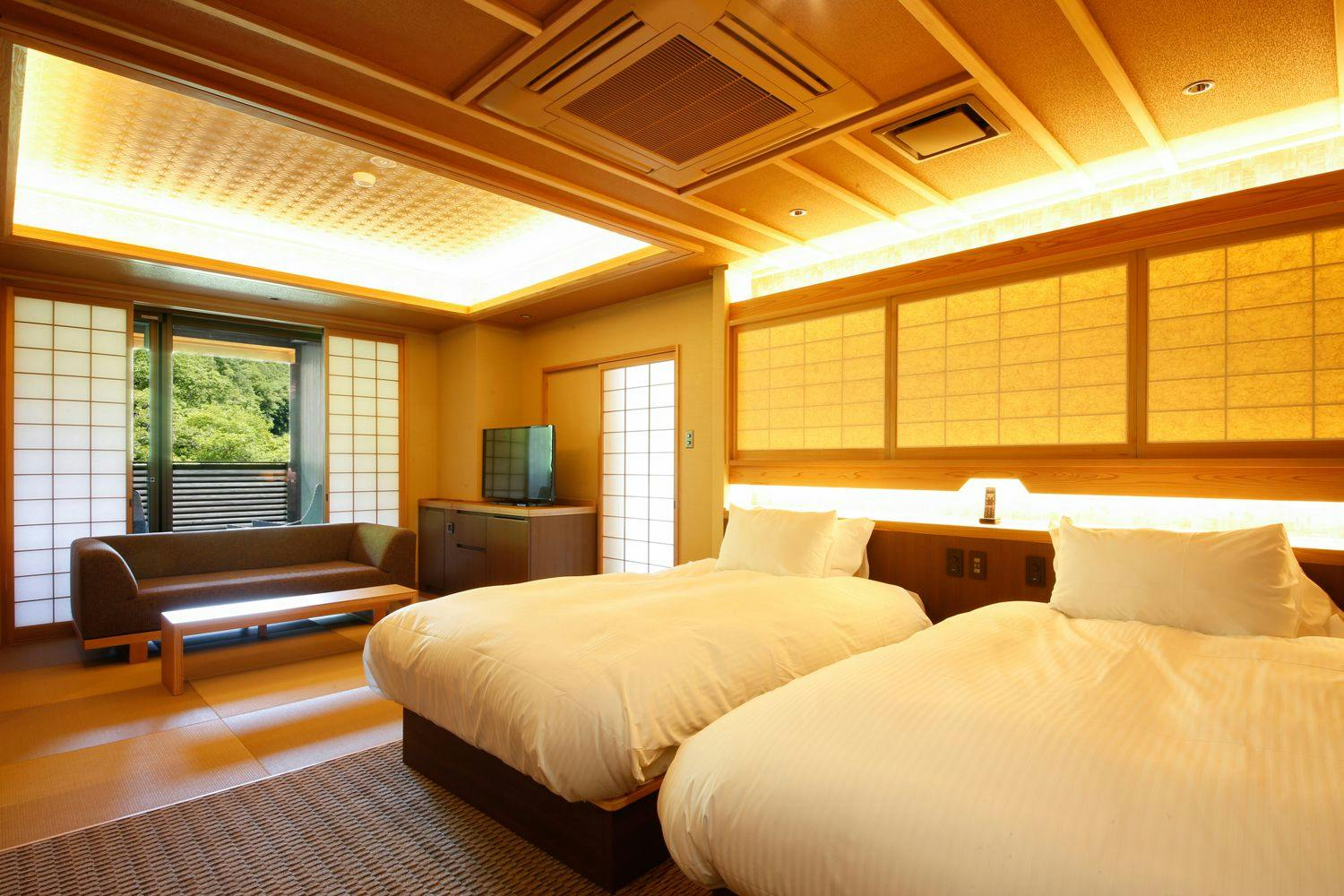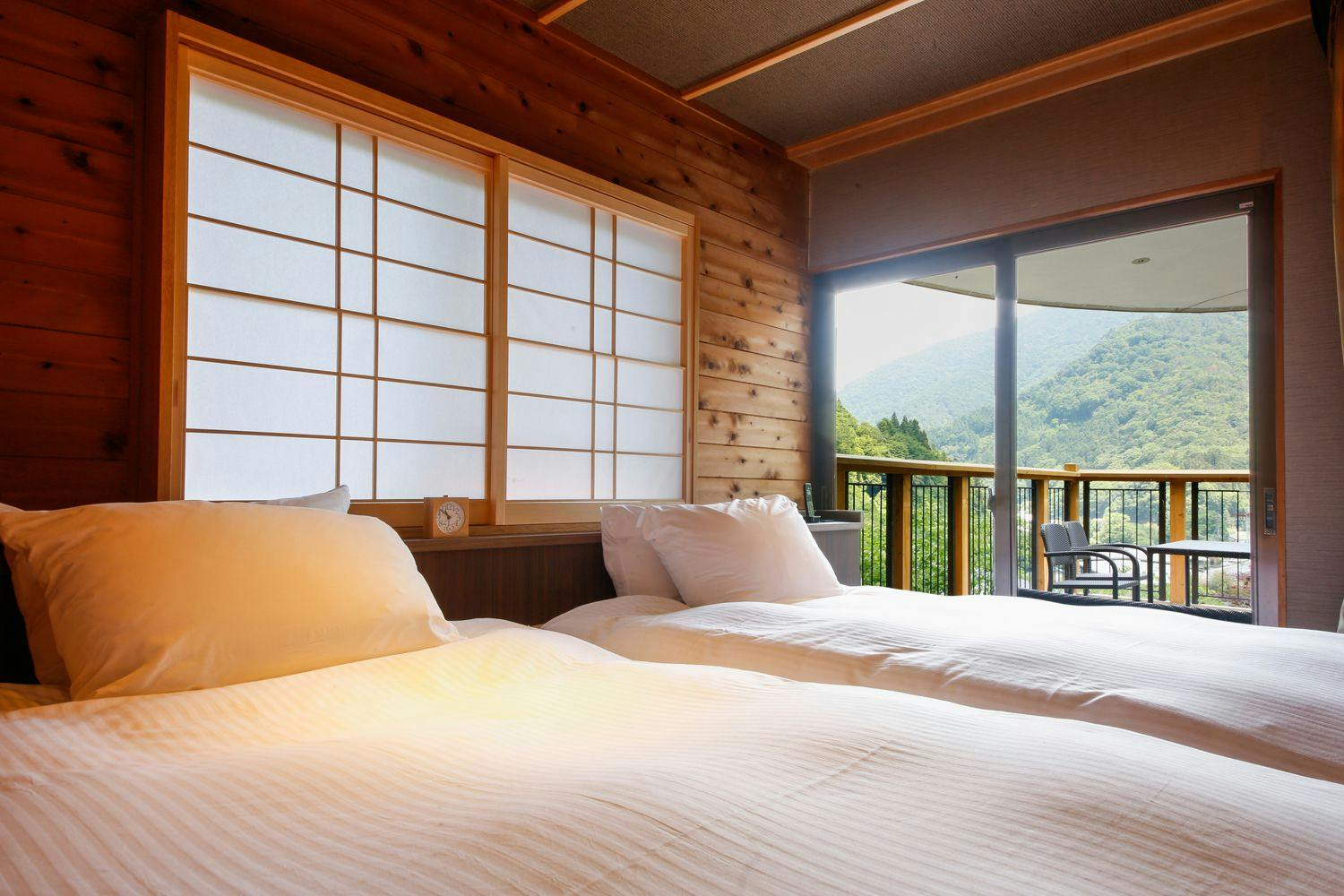 ■和室6帖+ツインルーム+温泉露天風呂+ウッドテラス