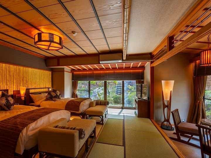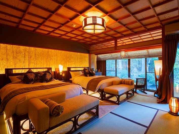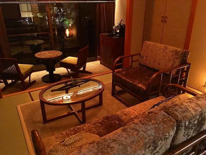 ■どこの部屋からでも庭園が望められ、夜にはライトアップされた庭園を望めます