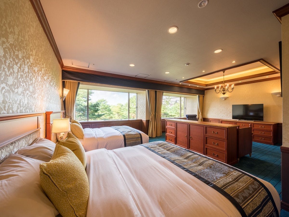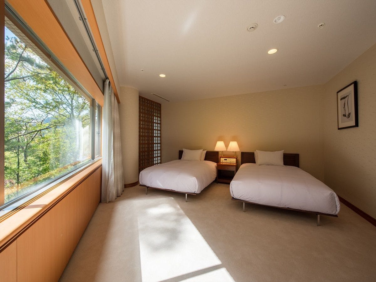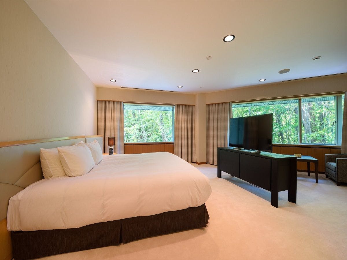 大きな窓越しに見える裏磐梯の四季に癒されることができるビューバスを備えた、このホテルでたった1つの特別なスイートルームです。