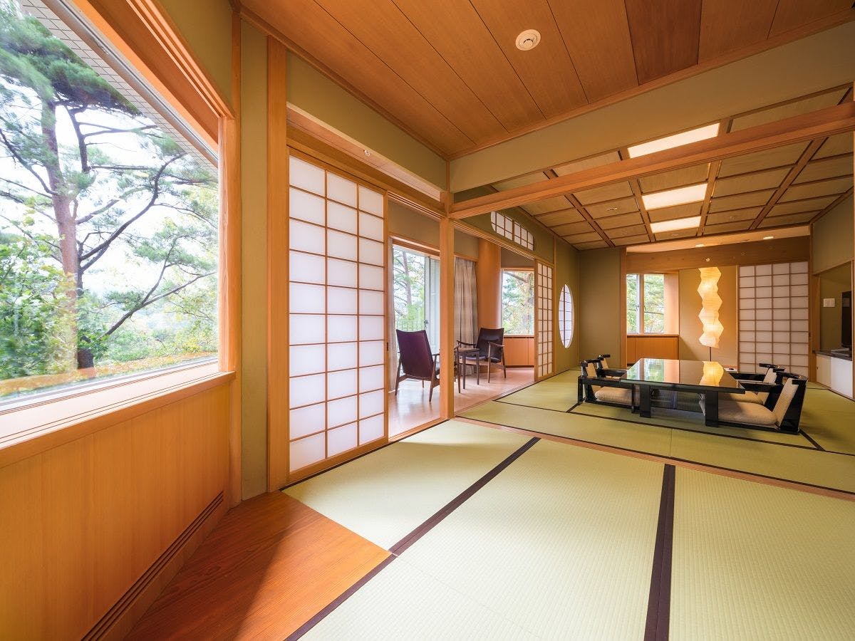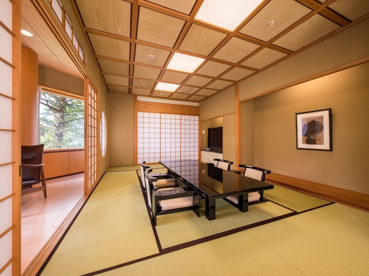 高原リゾートの風景を楽しむことのできる広縁と一体となった和室で、ゆったりと家族や友人との団欒をお楽しみ頂けます。