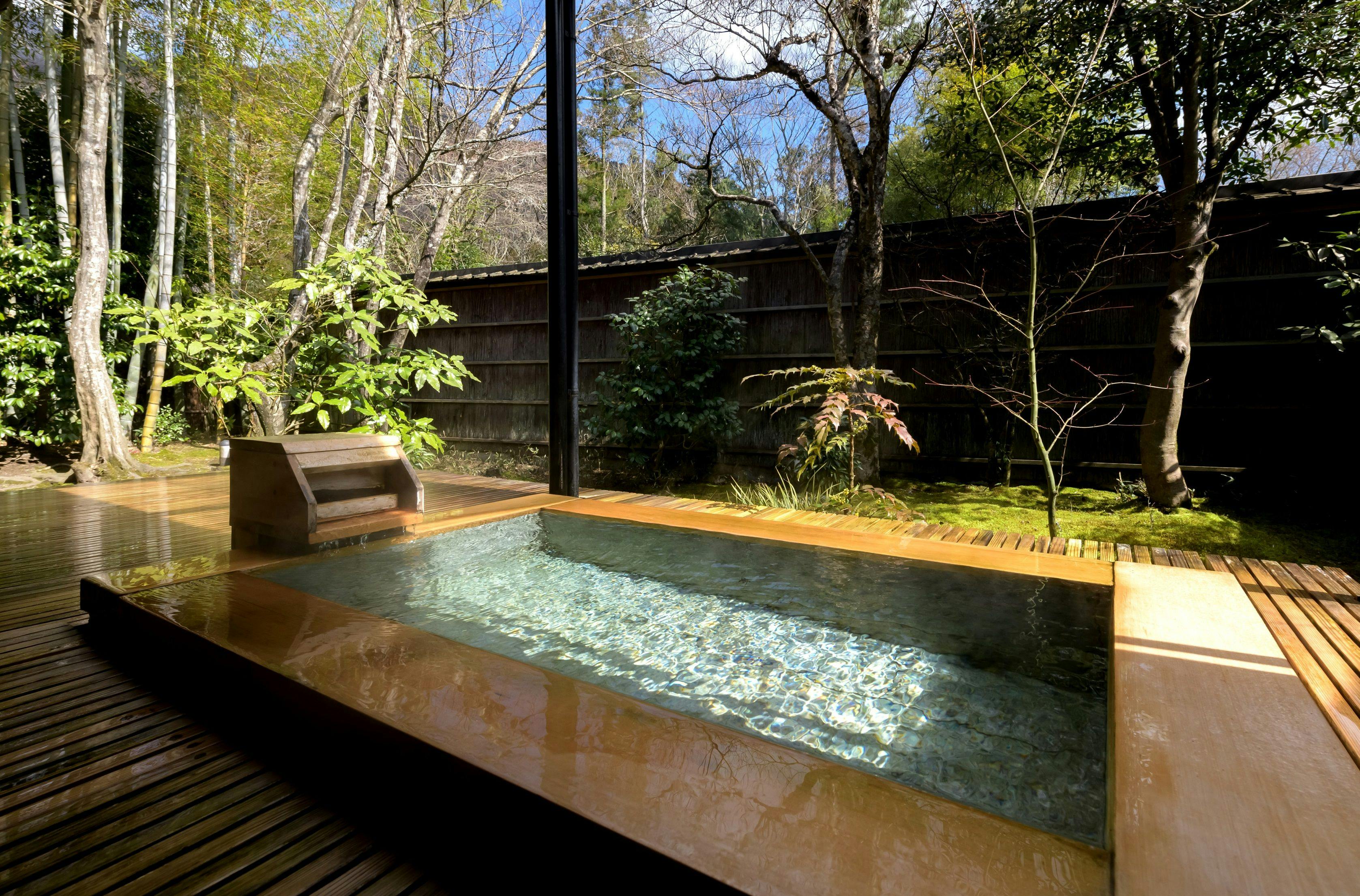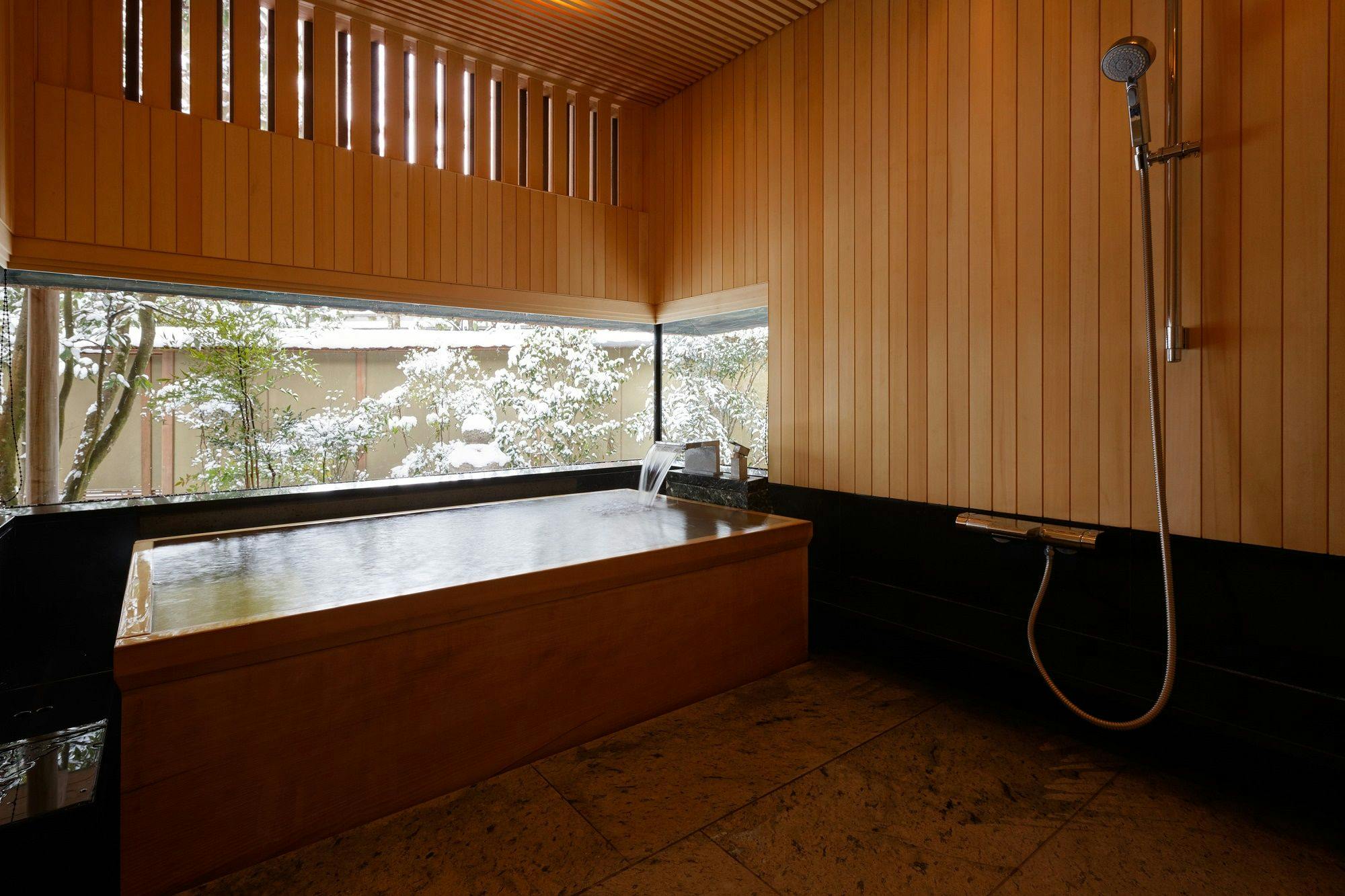 2017年リニューアル雪見障子から池を望む居間と、竹林の見える寝室はいずれも純和室。内風呂と専用の庭に面した露天風呂を備えております。
