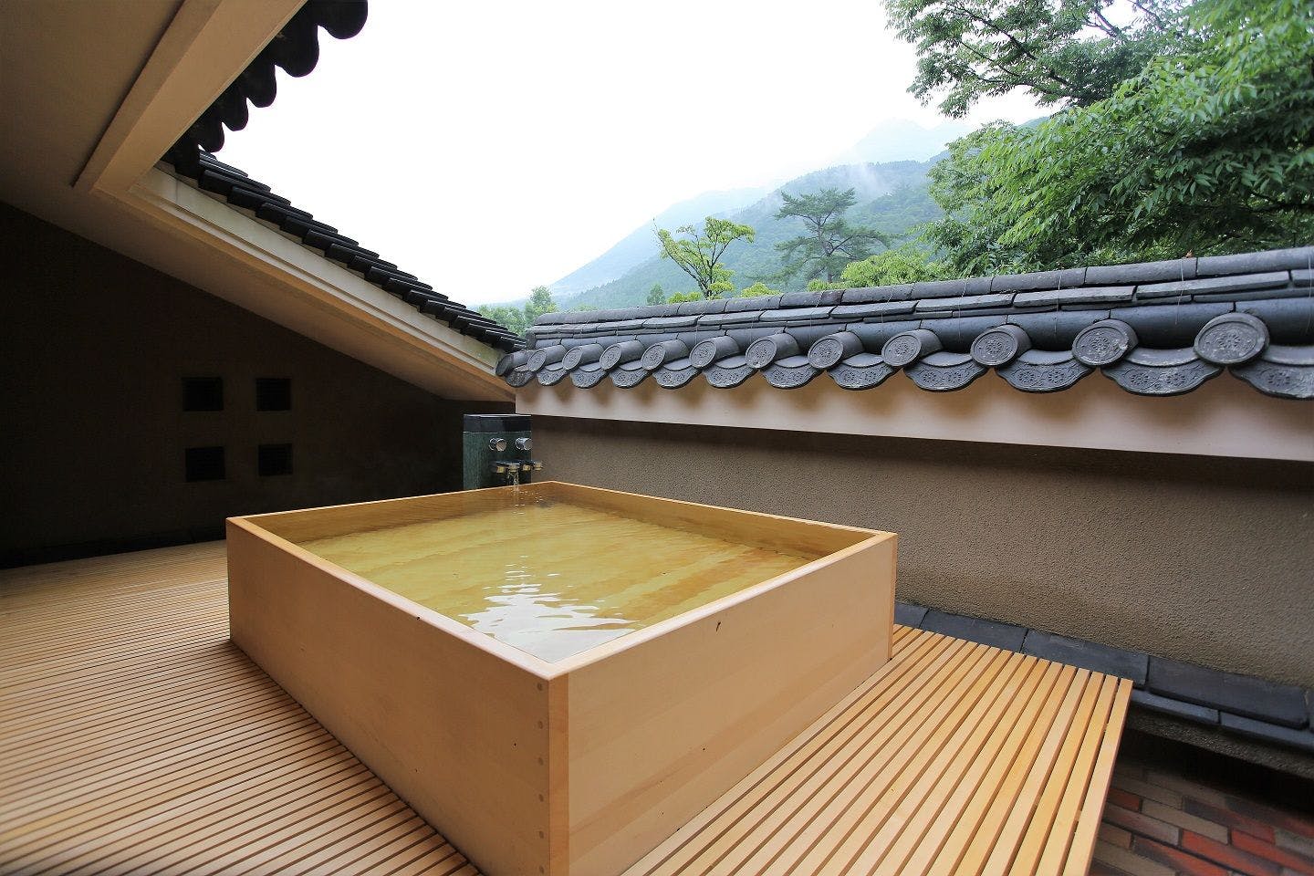 2017年7月リニューアル由布岳を望む専用のテラスに、広々とした露天風呂を新設いたしました。ツインベッドとリビングルーム、クローゼットルームを備えており、ご連泊にも適したお部屋です。お食事は館内のレストラン「蛍火園」にてご用意いたします。※洋室へのご宿泊は中学生以上の御客様に限らせていただいております。
