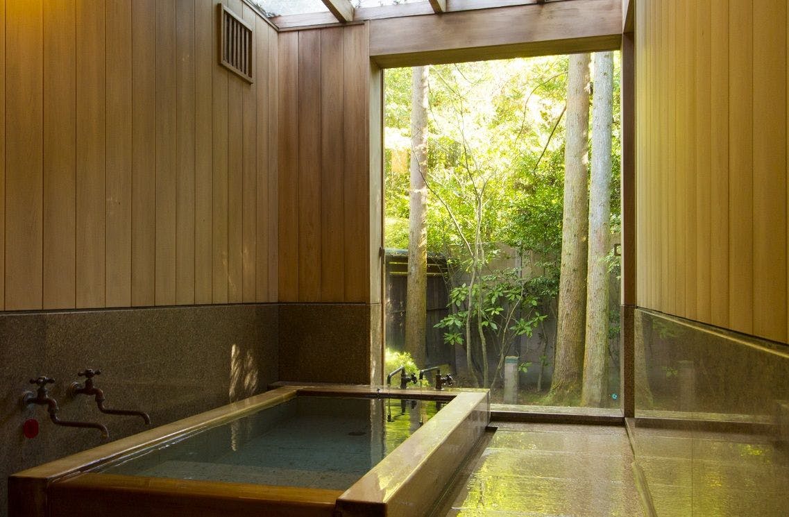 2018年リニューアル離れの奥のエリアに位置する「三番館」が新しく生まれ変わりました。和室の居間とツインベッドの寝室からは庭の緑と由布岳が望めます。木の香りが新しい内風呂で温泉を愉しんでいただいた後は、すぐ目の前の談話室にもお立ち寄りください。
