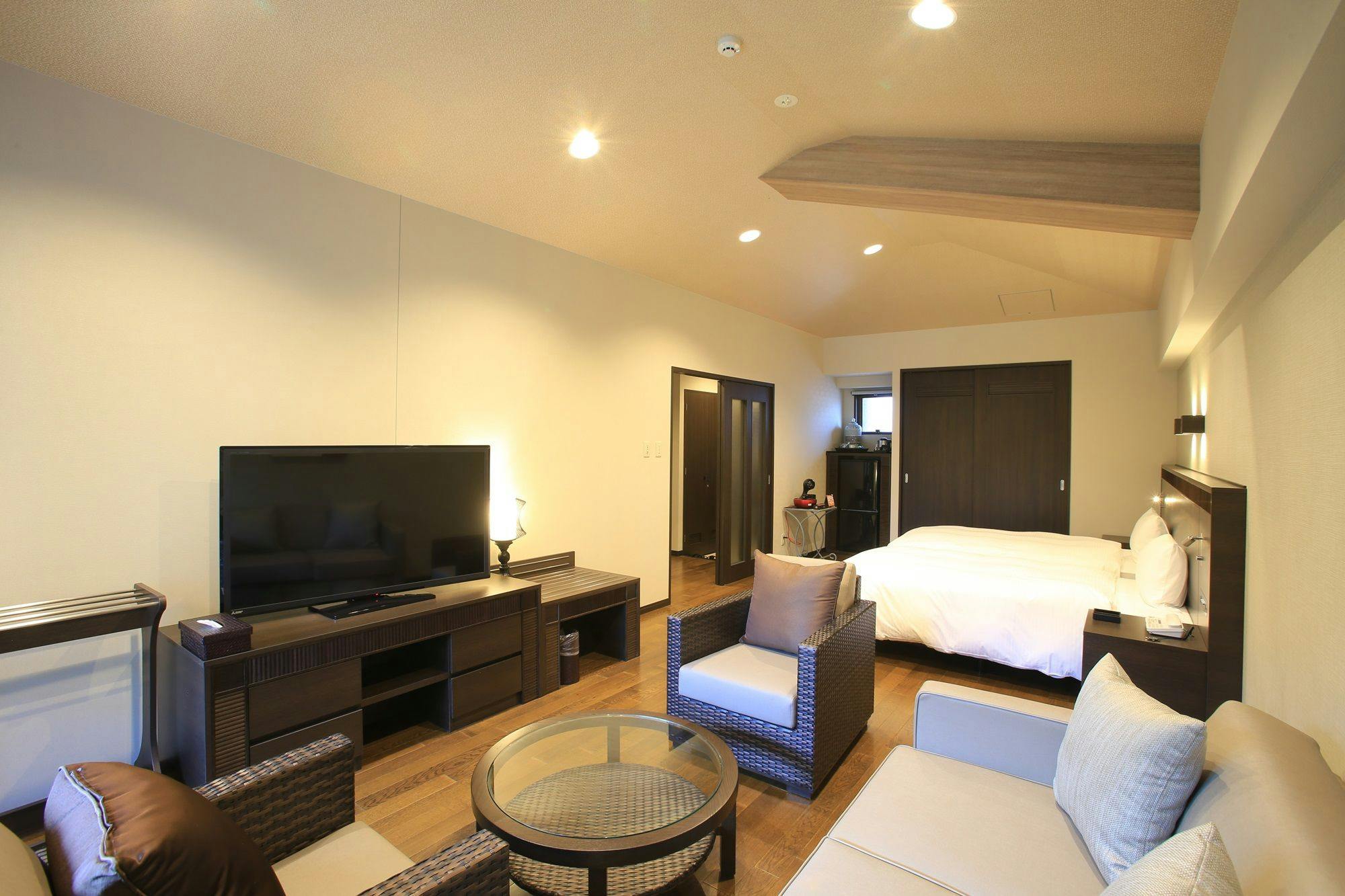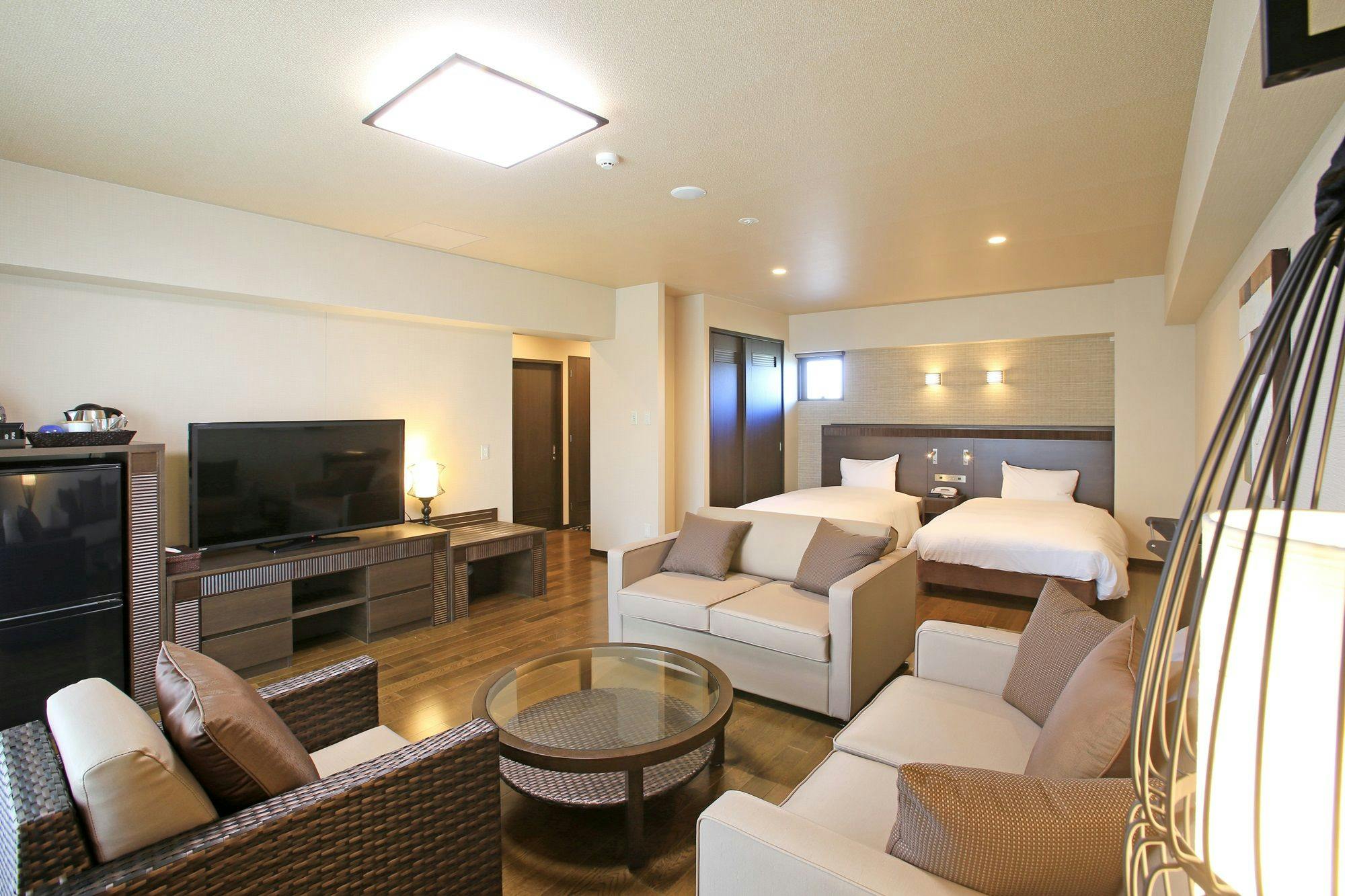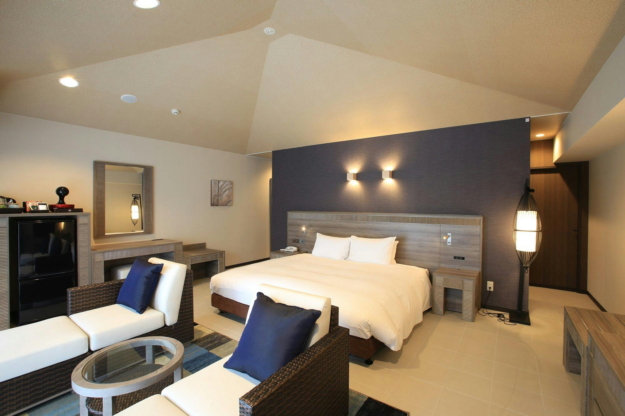 【なんくるの宿】全室テラス付ダブルルーム。海沿いに位置する広々とした空間で上質な時間をお過ごし頂けます。海はご覧いただけません。